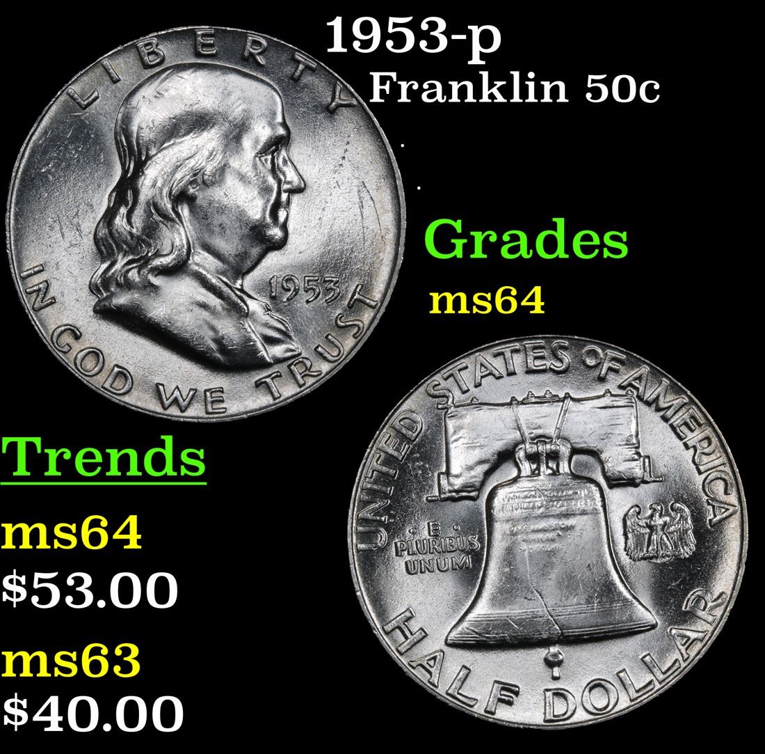 1953-p . . Franklin Half Dollar 50c Grades Choice Unc.