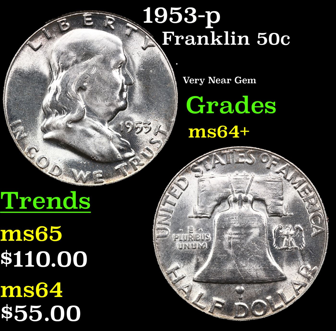1953-p Franklin Half Dollar 50c Grades Choice+ Unc.