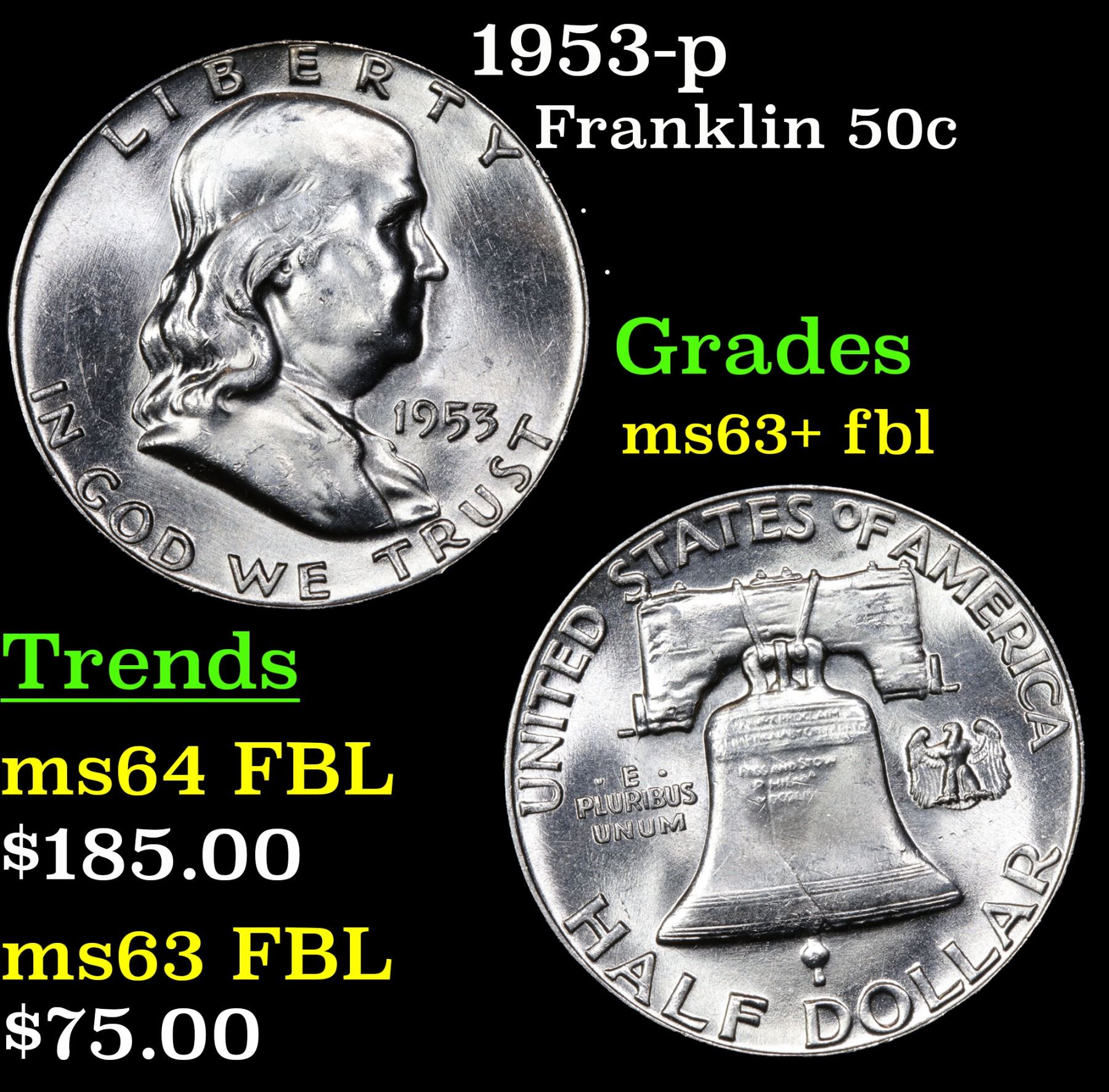 1953-p . . Franklin Half Dollar 50c Grades Select Unc+ FBL.