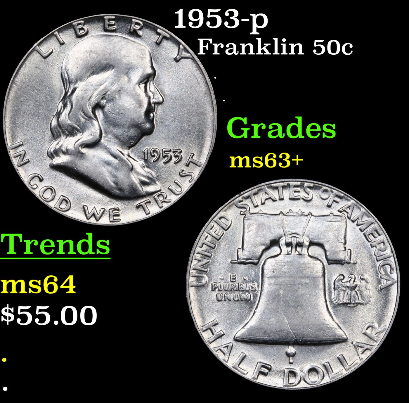1953-p Franklin Half Dollar 50c Grades Select+ Unc.