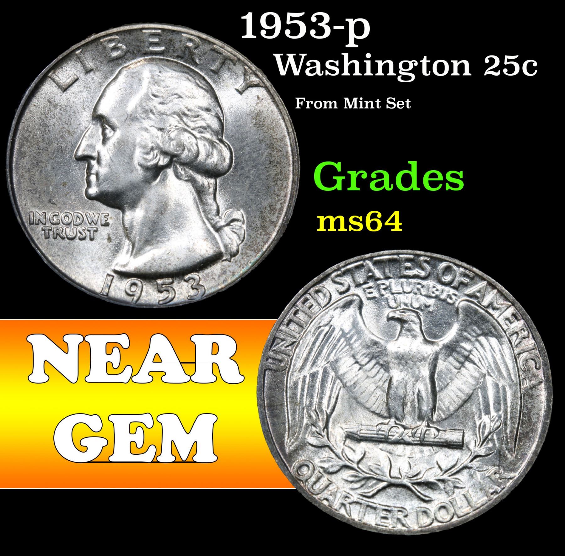 1953-p From Mint Set . Washington Quarter 25c Grades Choice Unc.
