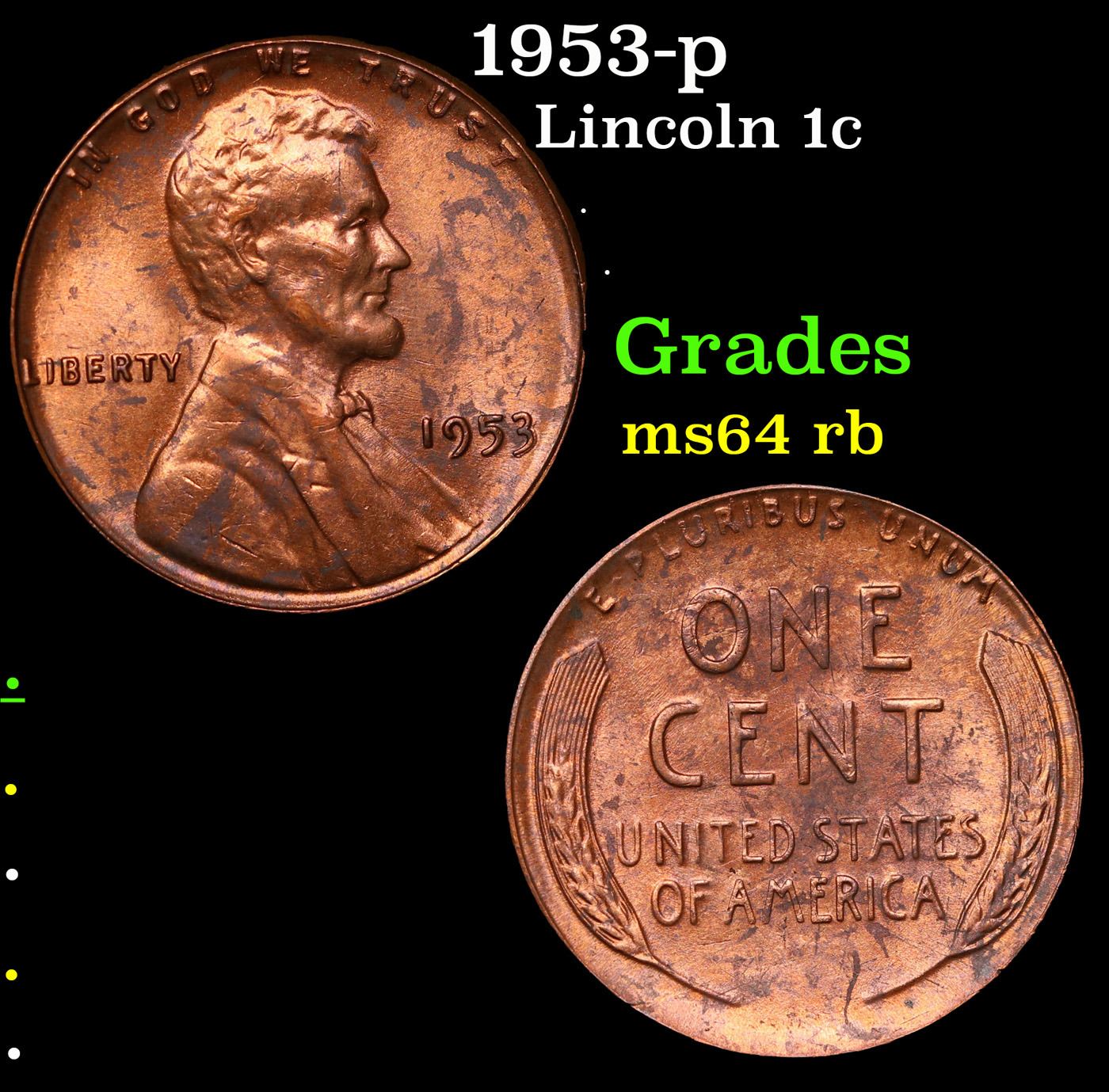 1953-p Lincoln Cent 1c Grades Choice Unc RB.
