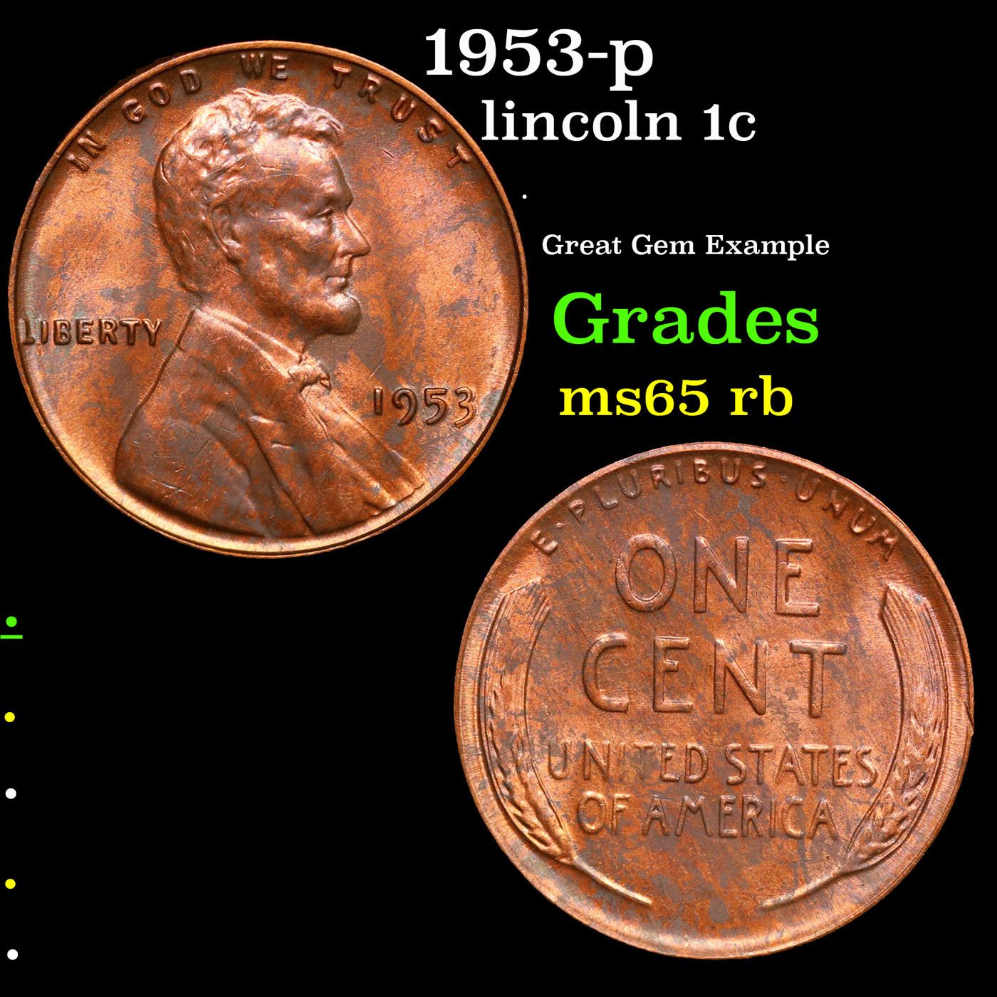 1953-p Lincoln Cent 1c Grades GEM Unc RB.