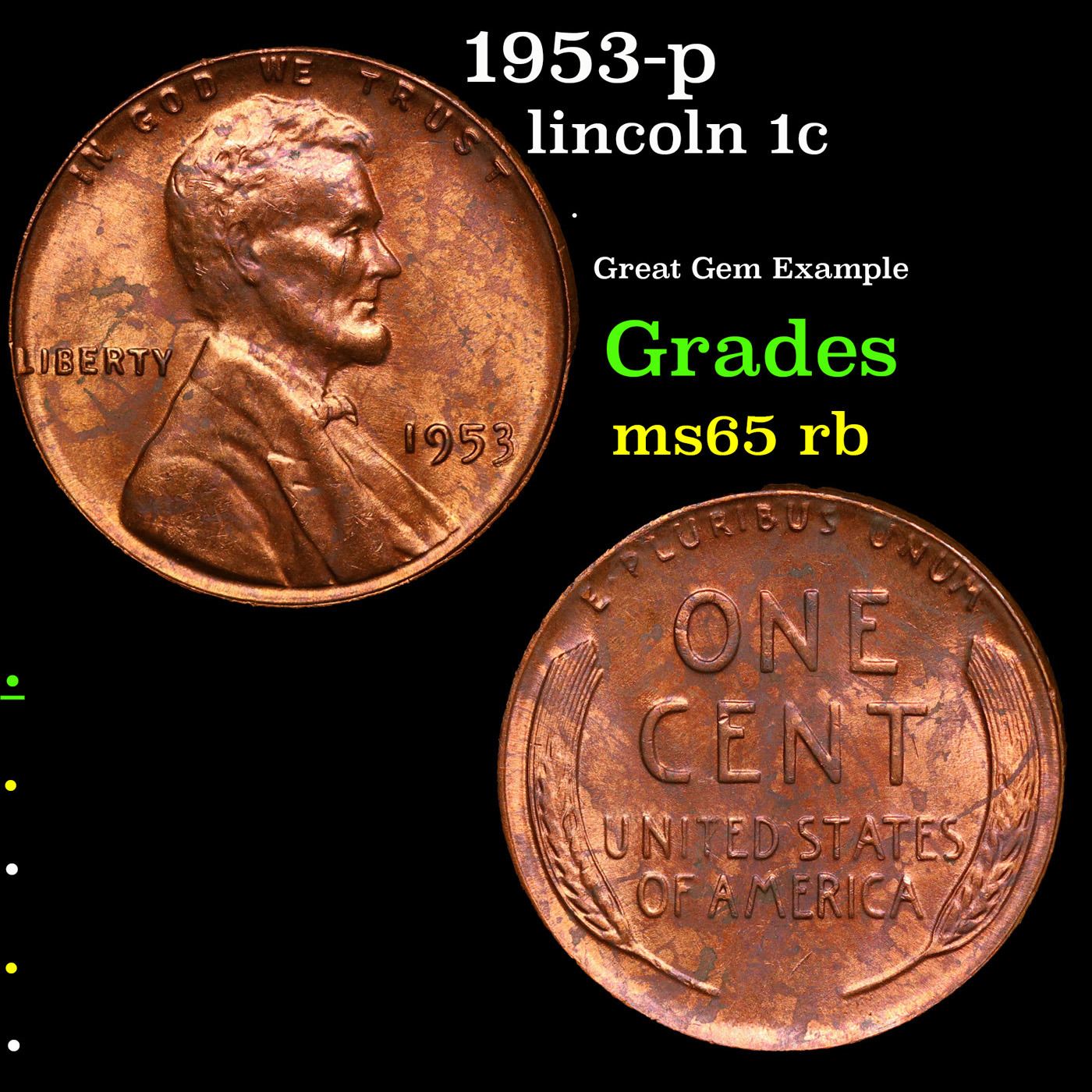 1953-p Lincoln Cent 1c Grades GEM Unc RB.