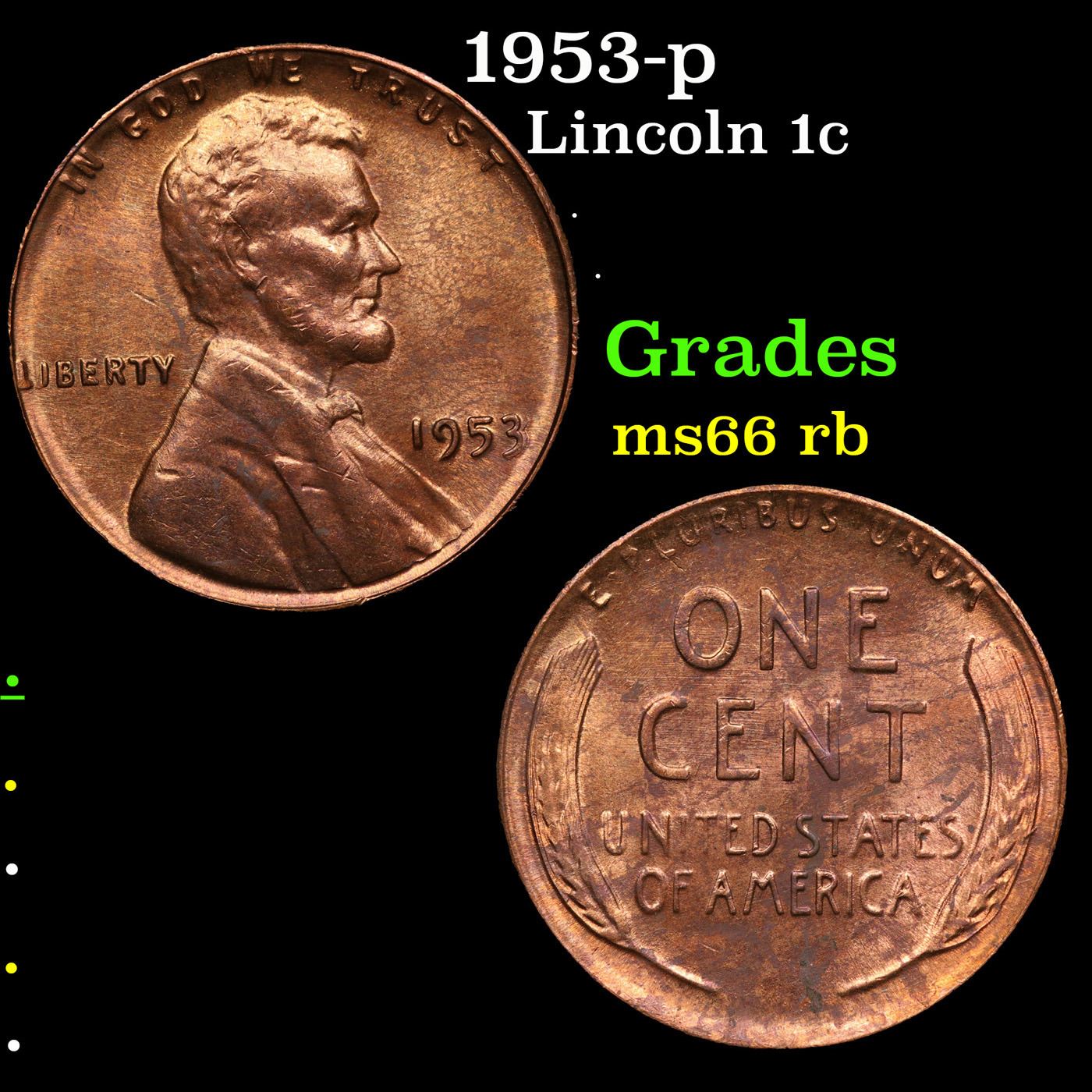 1953-p Lincoln Cent 1c Grades GEM+ Unc RB.