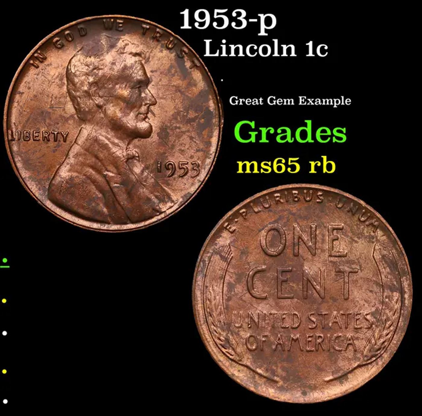 1953-p Lincoln Cent 1c Grades GEM Unc RB.