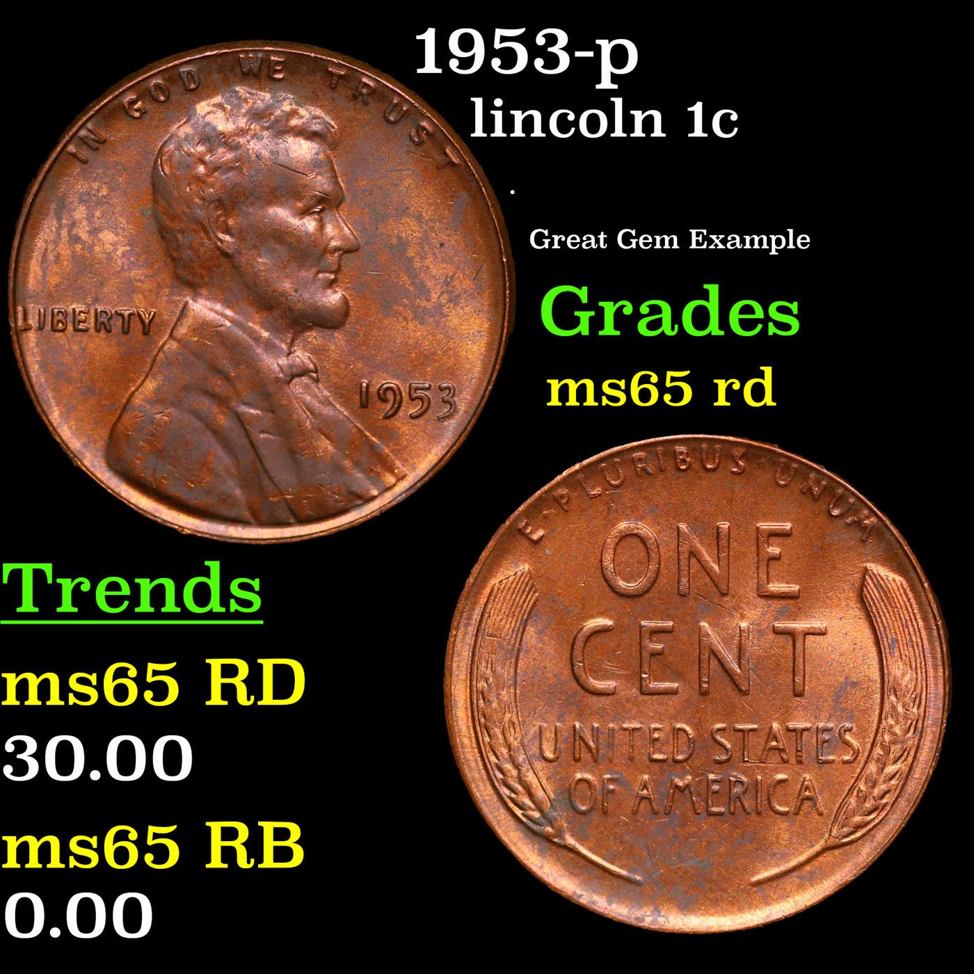 1953-p Lincoln Cent 1c Grades GEM Unc RD.