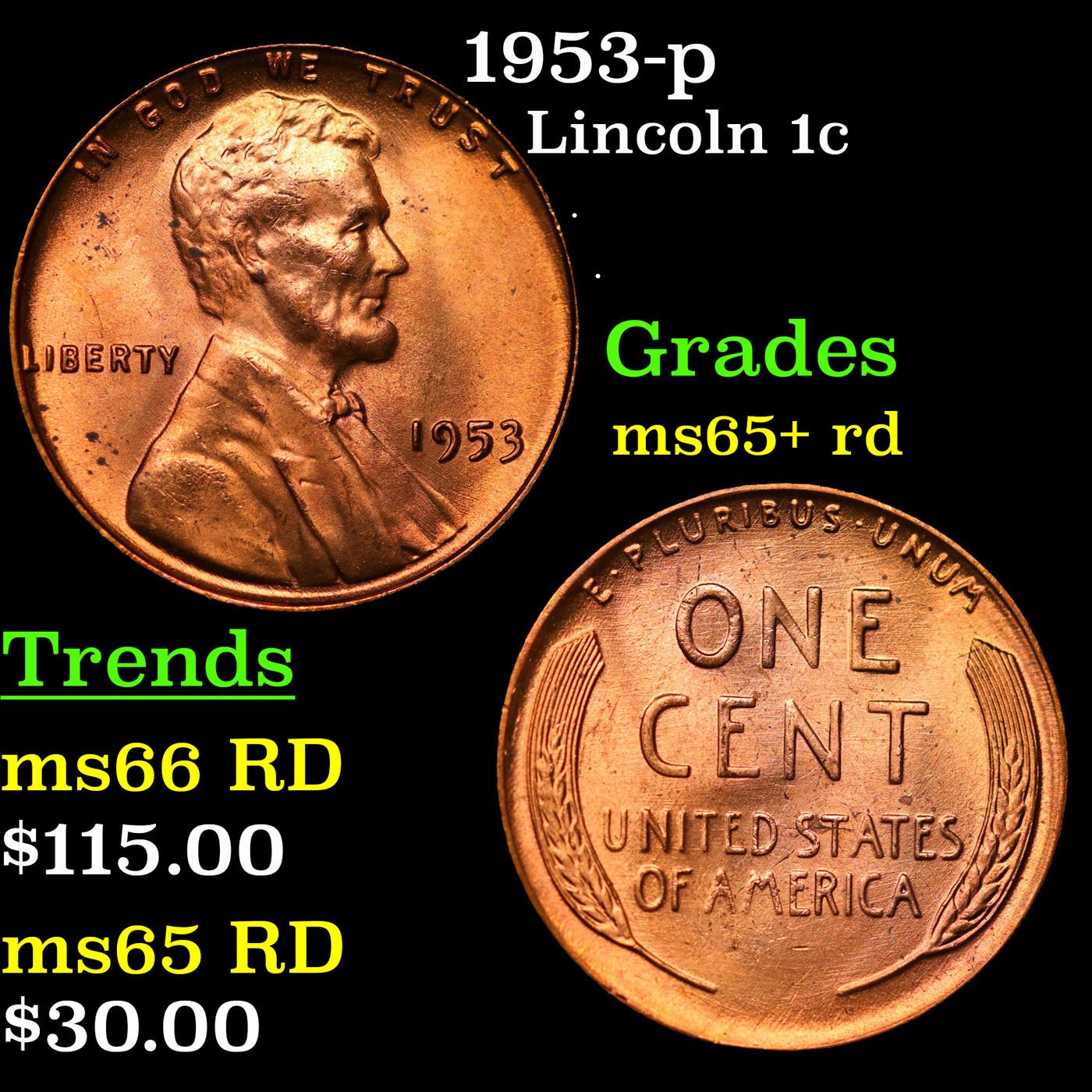 1953-p Lincoln Cent 1c Grades Gem+ Unc RD.