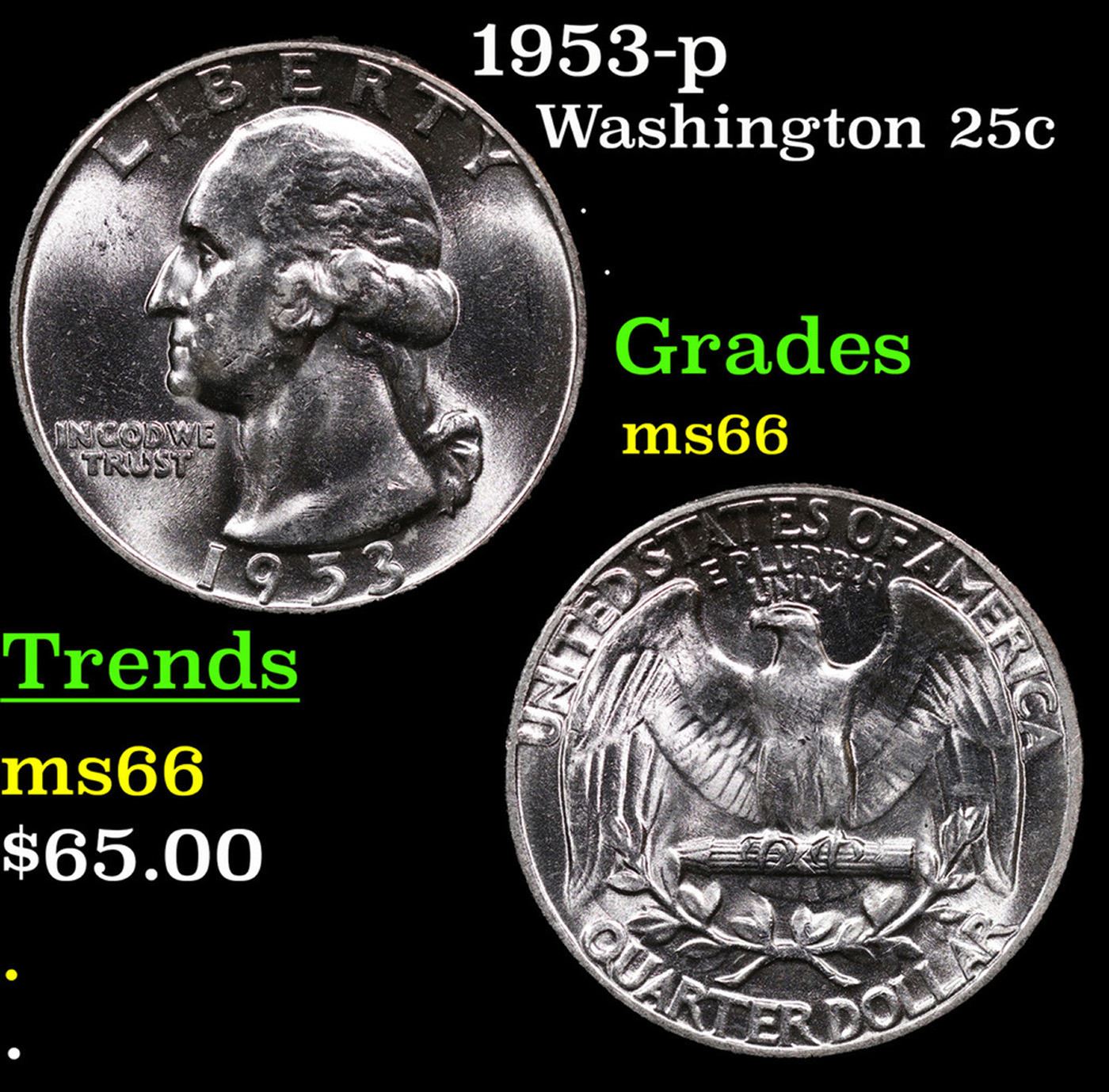 1953-p Washington Quarter 25c Grades GEM+ Unc.