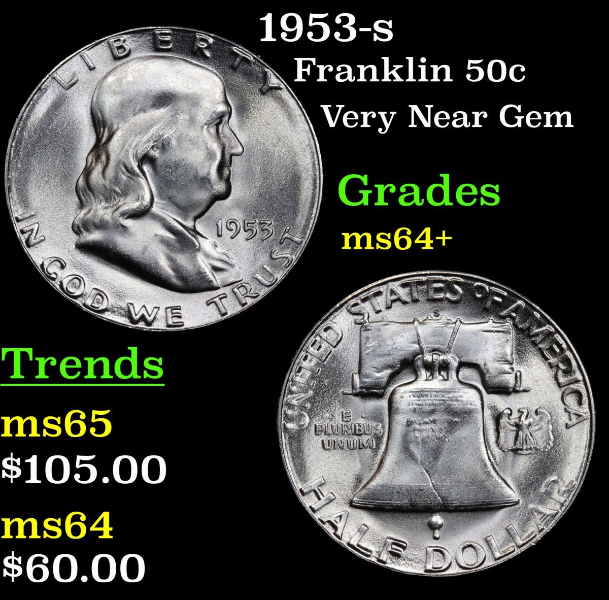 1953-s Franklin Half Dollar 50c Grades Choice+ Unc.