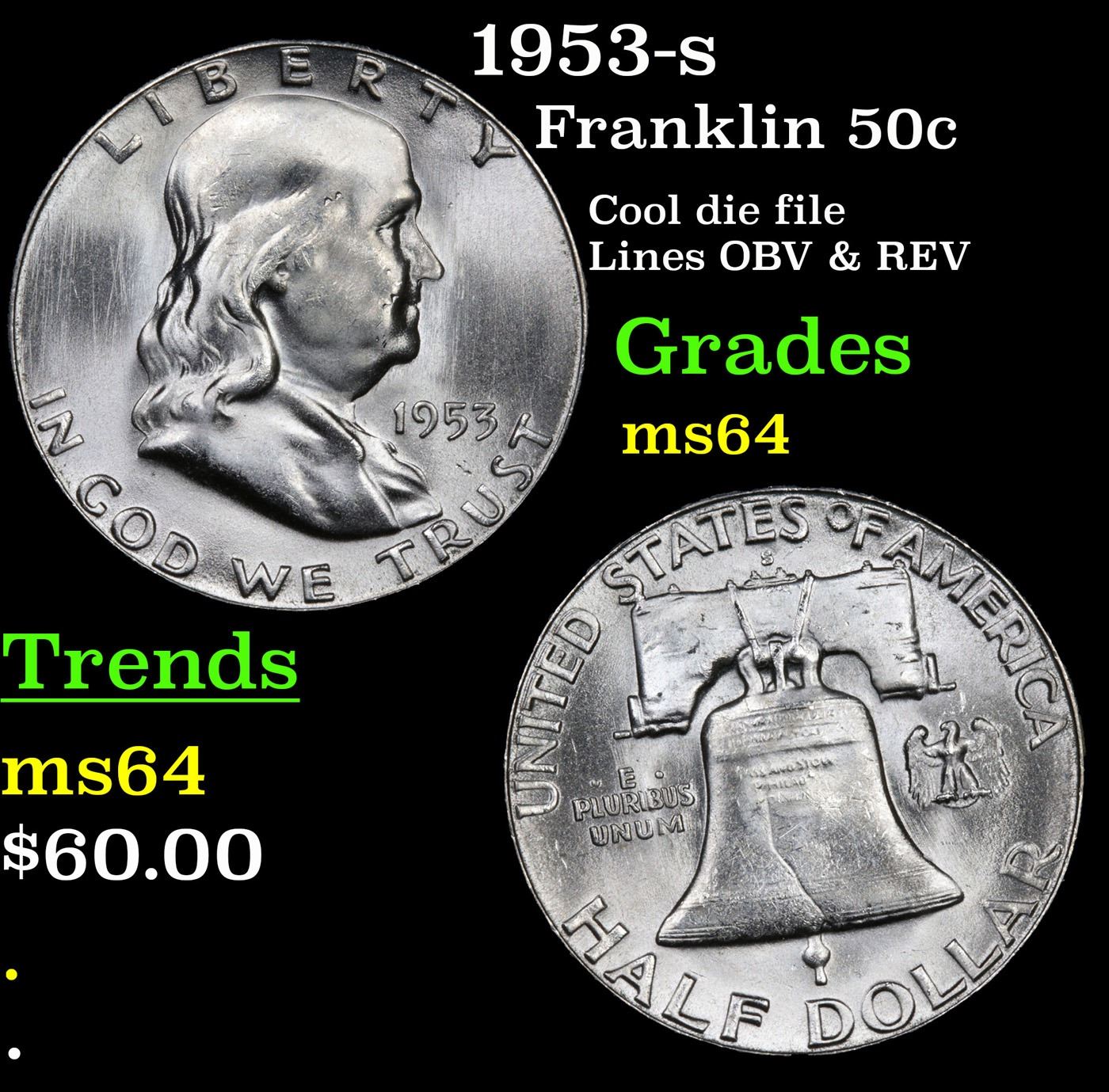 1953-s Franklin Half Dollar 50c Grades Choice Unc.