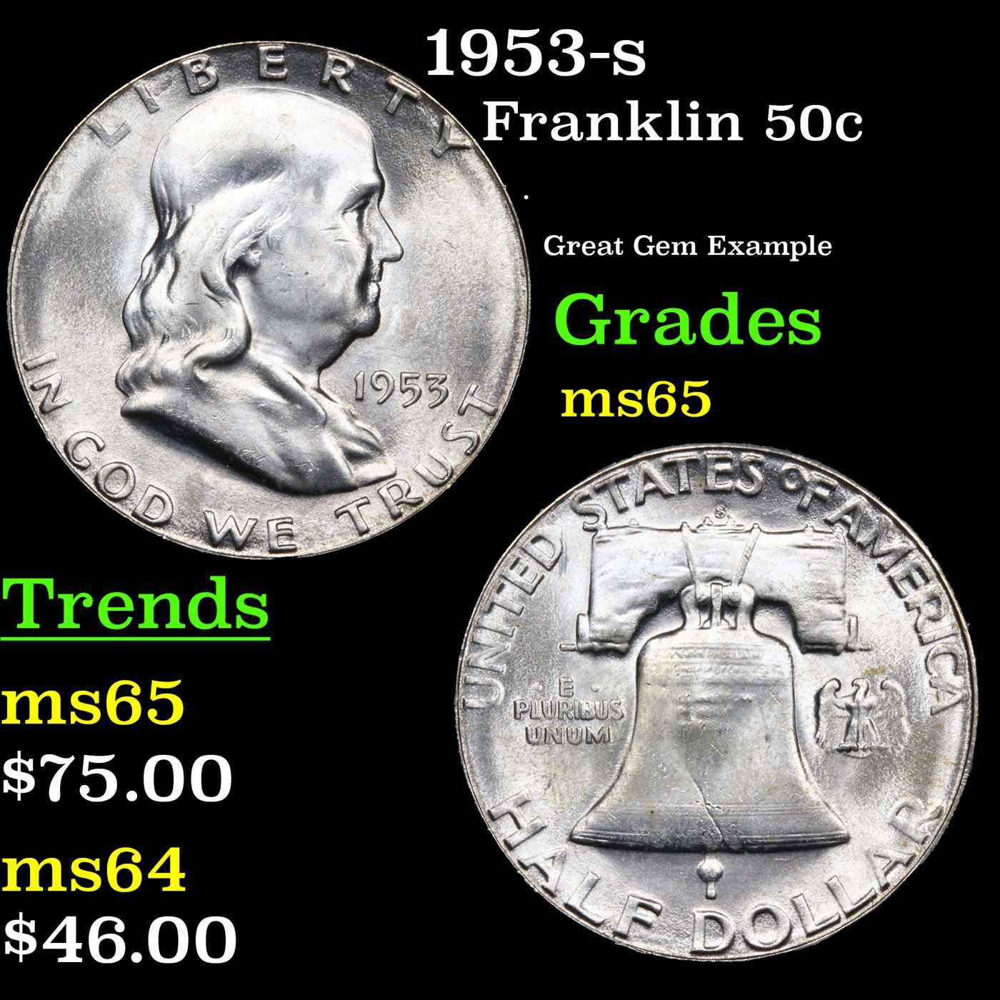 1953-s Franklin Half Dollar 50c Grades GEM Unc.