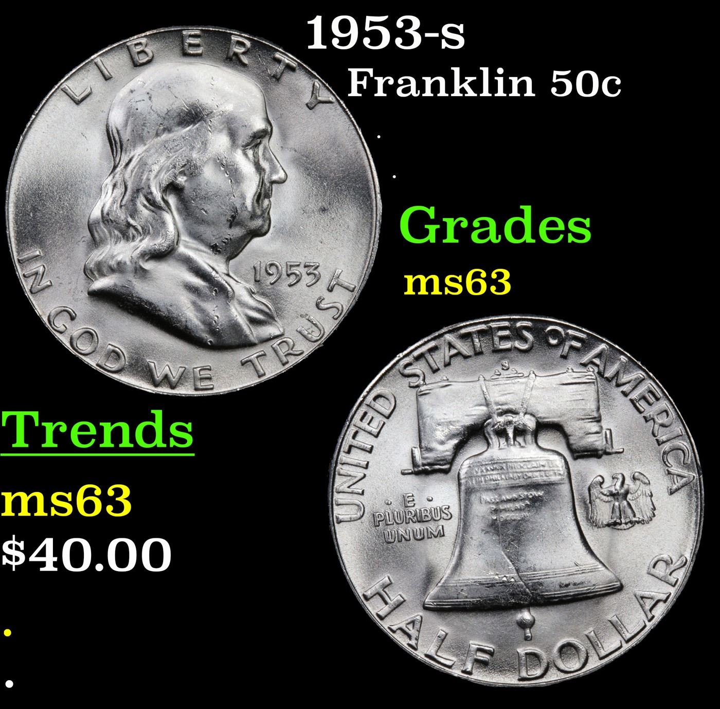 1953-s Franklin Half Dollar 50c Grades Select Unc.