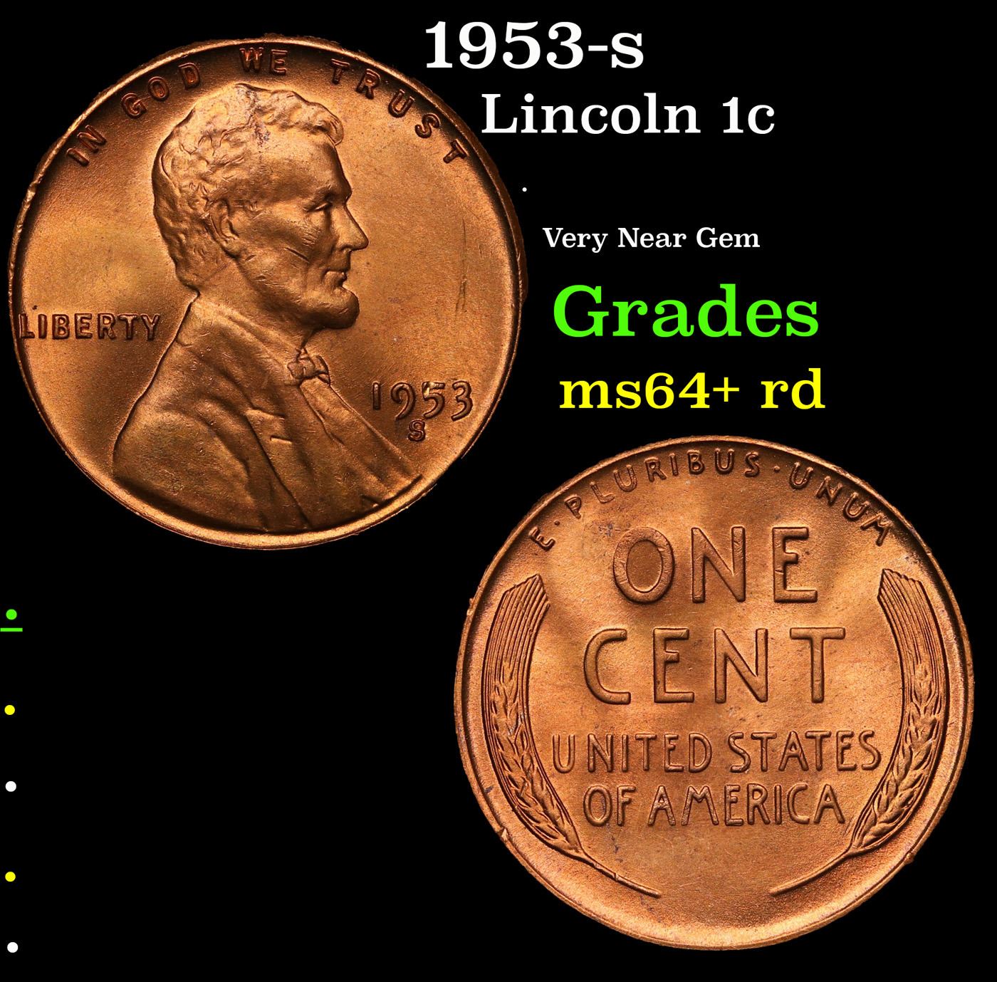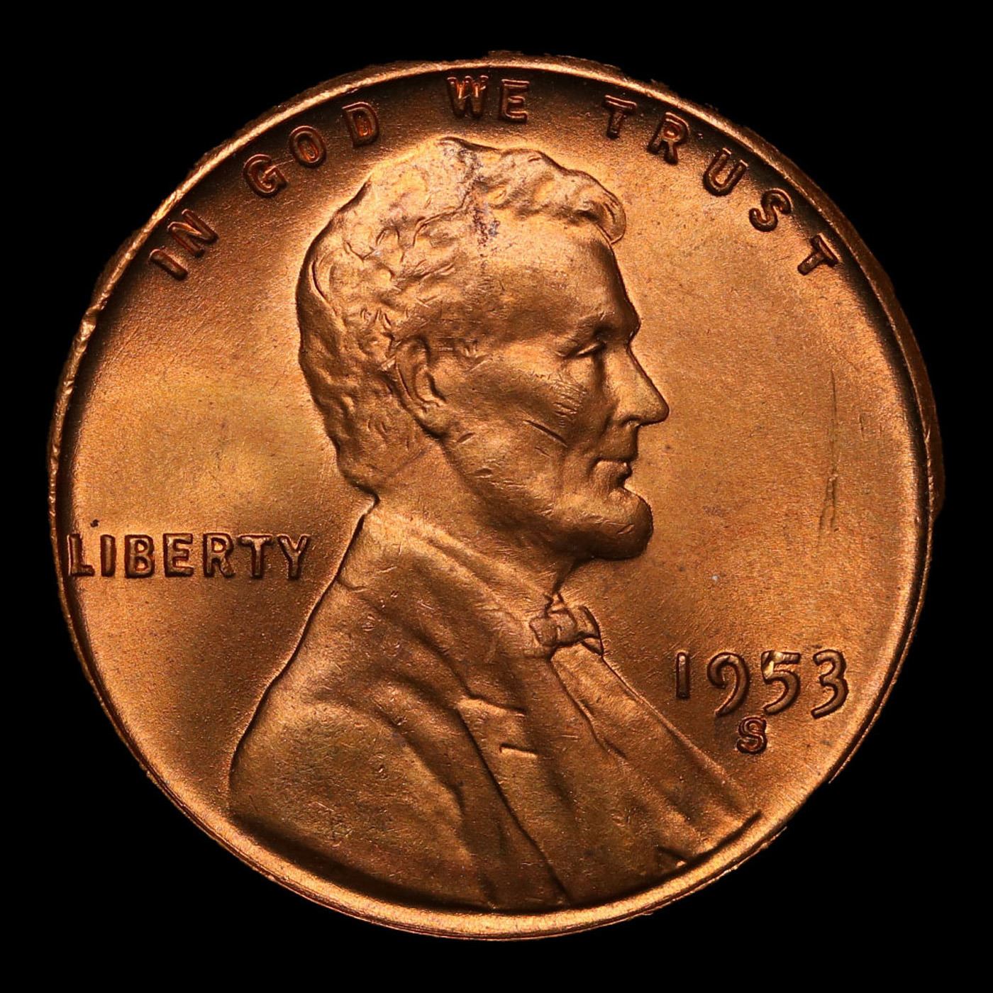 1953-s Lincoln Cent 1c Grades Choice+ Unc RD.