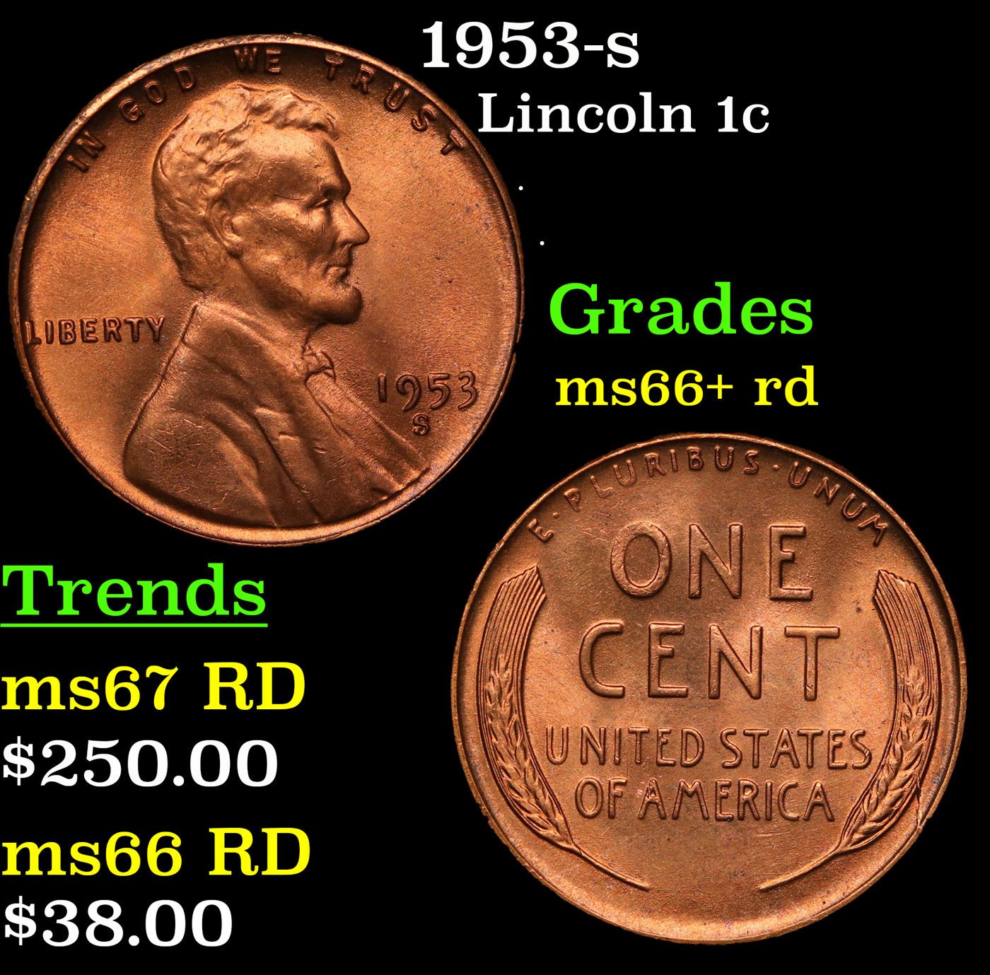 1953-s Lincoln Cent 1c Grades GEM++ RD.