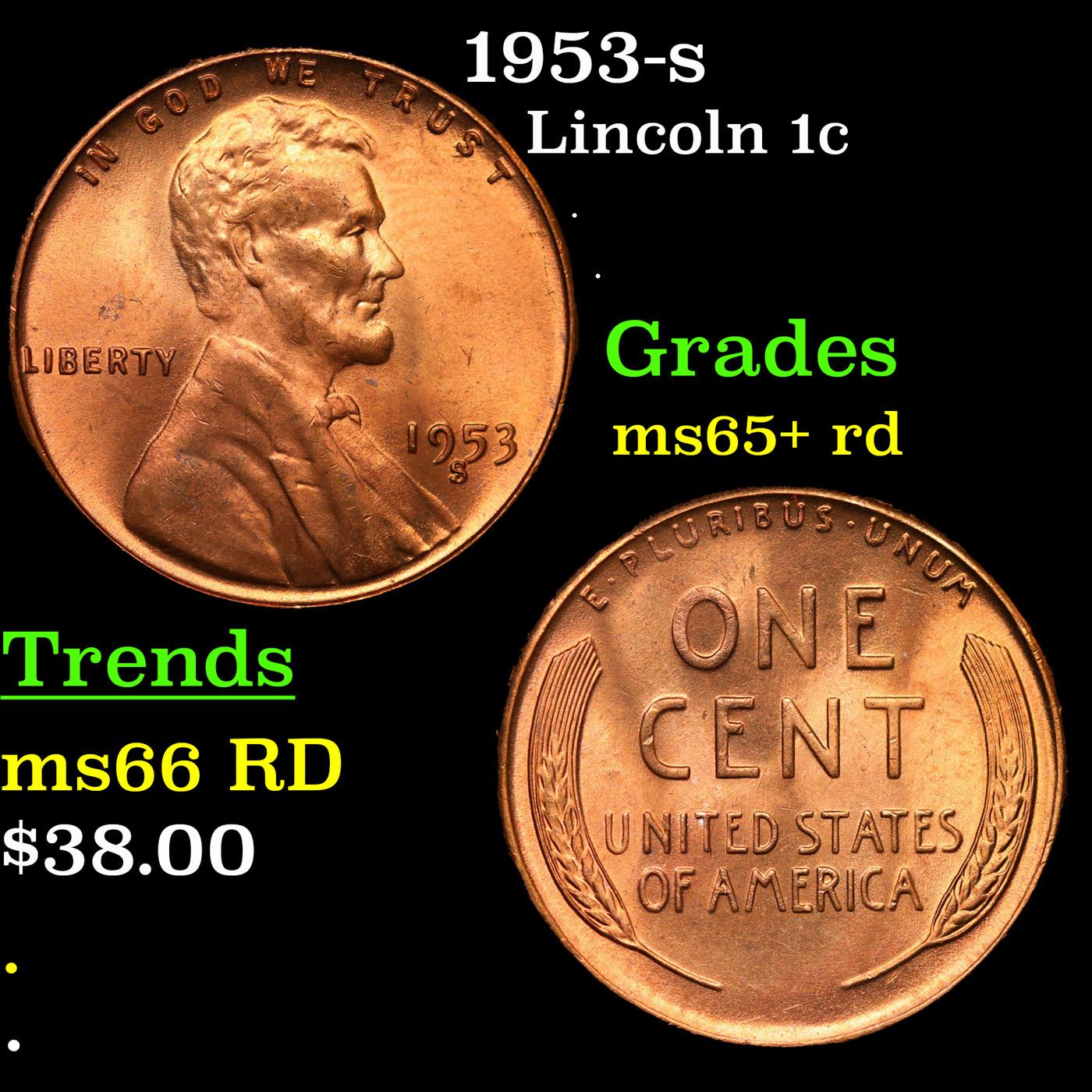 1953-s Lincoln Cent 1c Grades Gem+ Unc RD.
