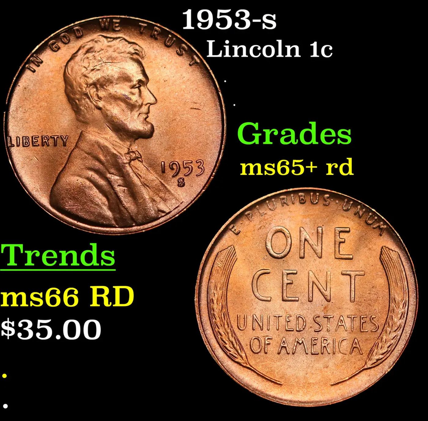 1953-s Lincoln Cent 1c Grades Gem+ Unc RD.