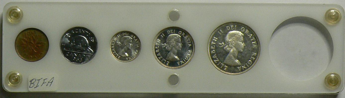 1953, year set in white holder, Missing dollar. Mix NSF & SF.