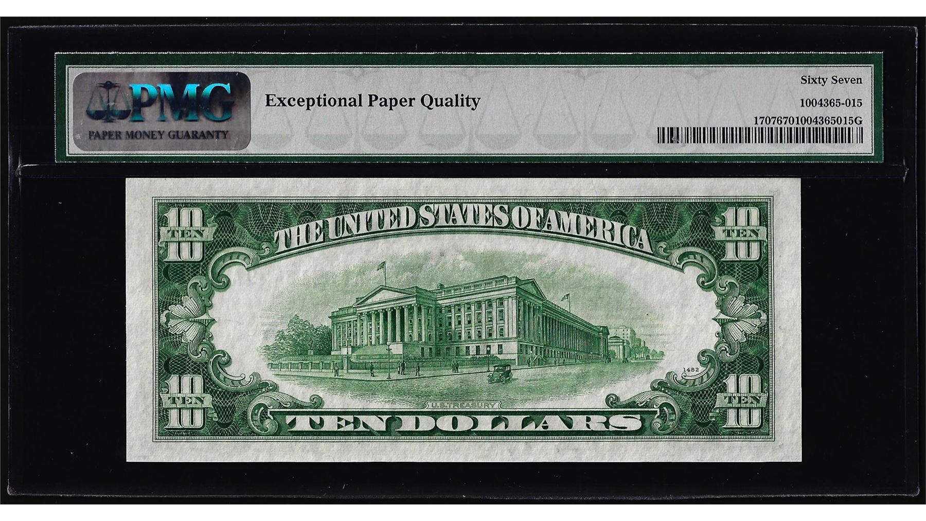 One 1953A $10 Silver Certificate Note Fr.1707 PMG Superb Gem Uncirculated 67EPQ. PMG Certified.