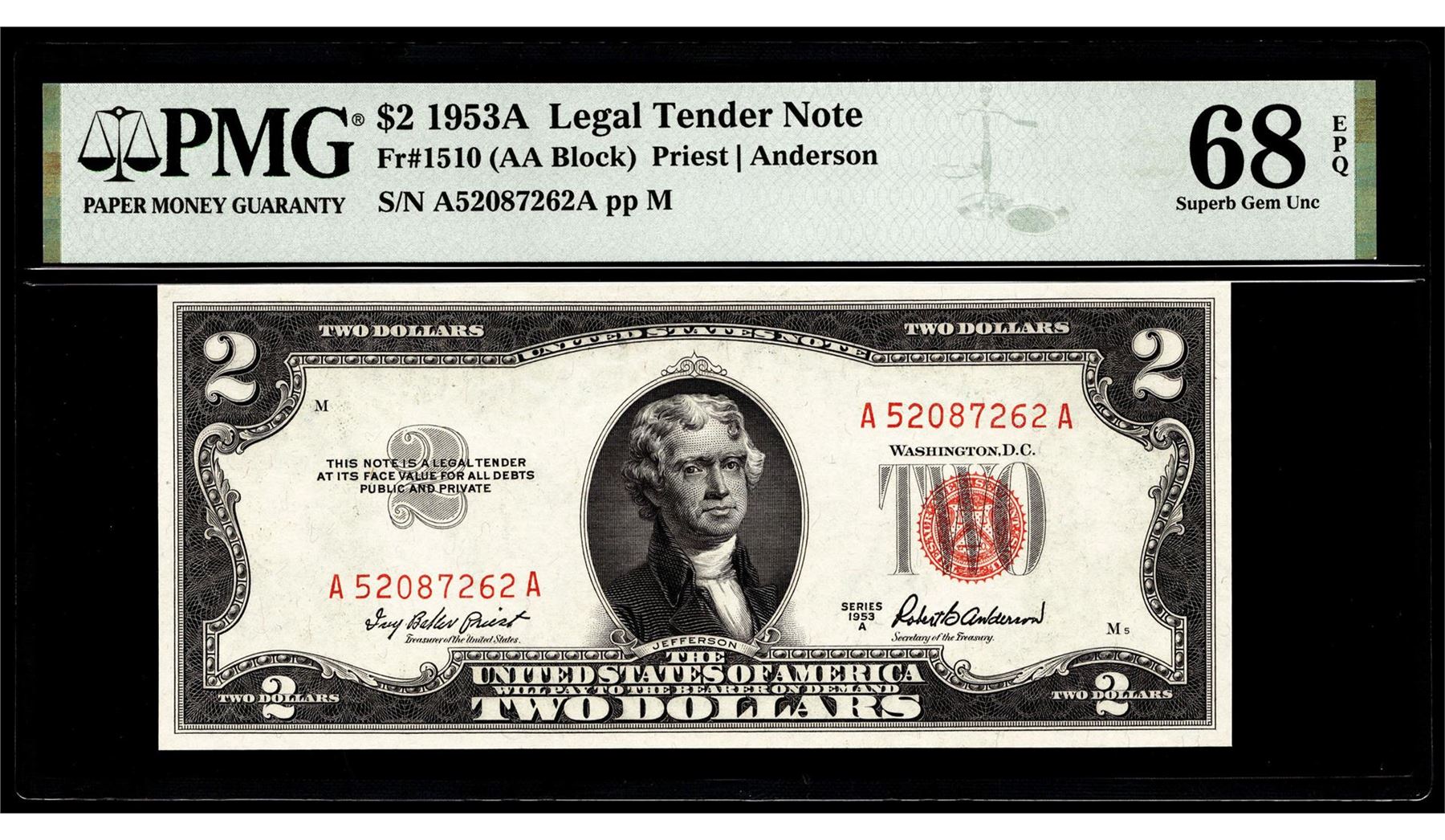 1953A $2 Legal Tender Note Fr.1510 PMG Superb Gem Uncirculated 68EPQ