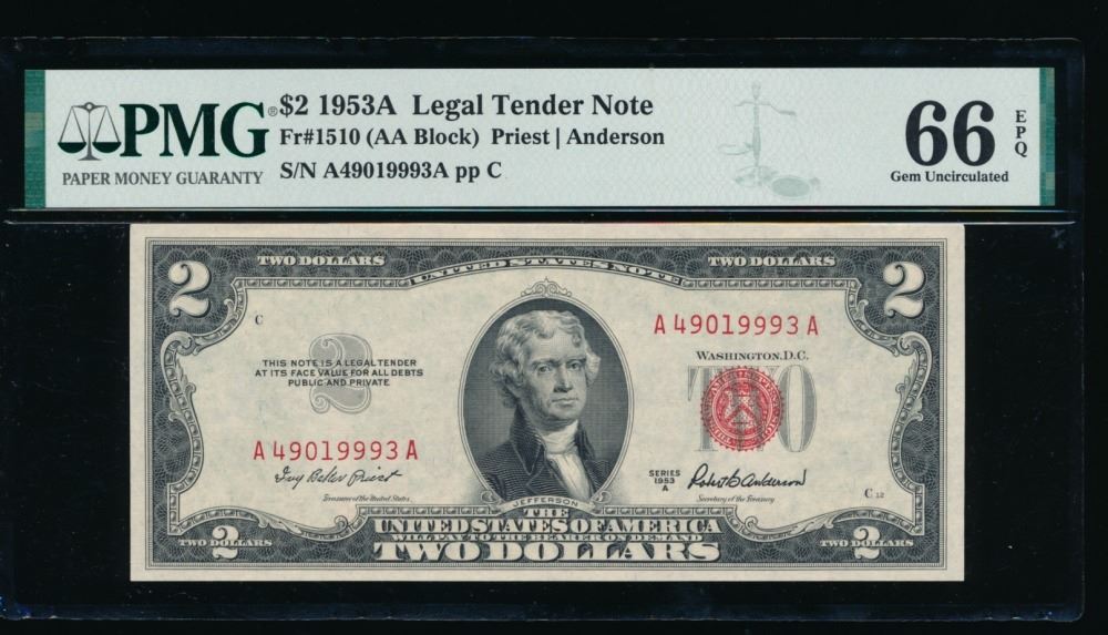 One 1953A $2 Legal Tender Note PMG 66EPQ.