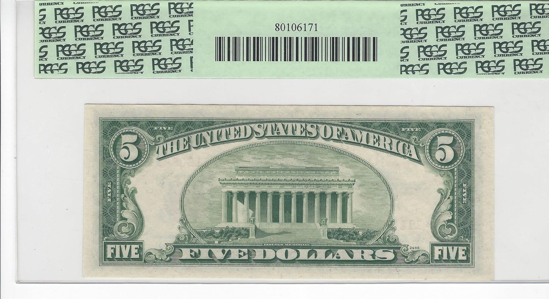 Excellent 1953 STAR $5 Legal Tender replacement note. Graded 65 PPQ Gem New. The note is well centered and the embossing and ink pops off the notes.