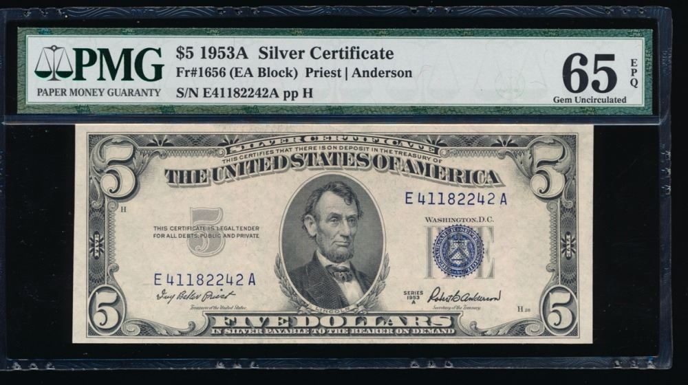 One 1953A $5 Silver Certificate PMG 65EPQ.