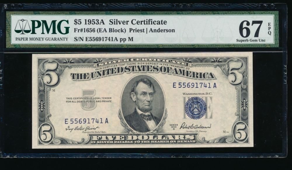 One 1953A $5 Silver Certificate PMG 67EPQ.