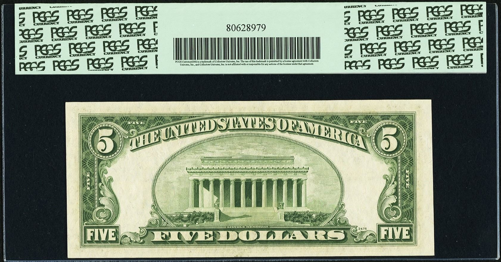 One 1953A $5 Silver Certificate STAR Note PCGS 65PPQ.
