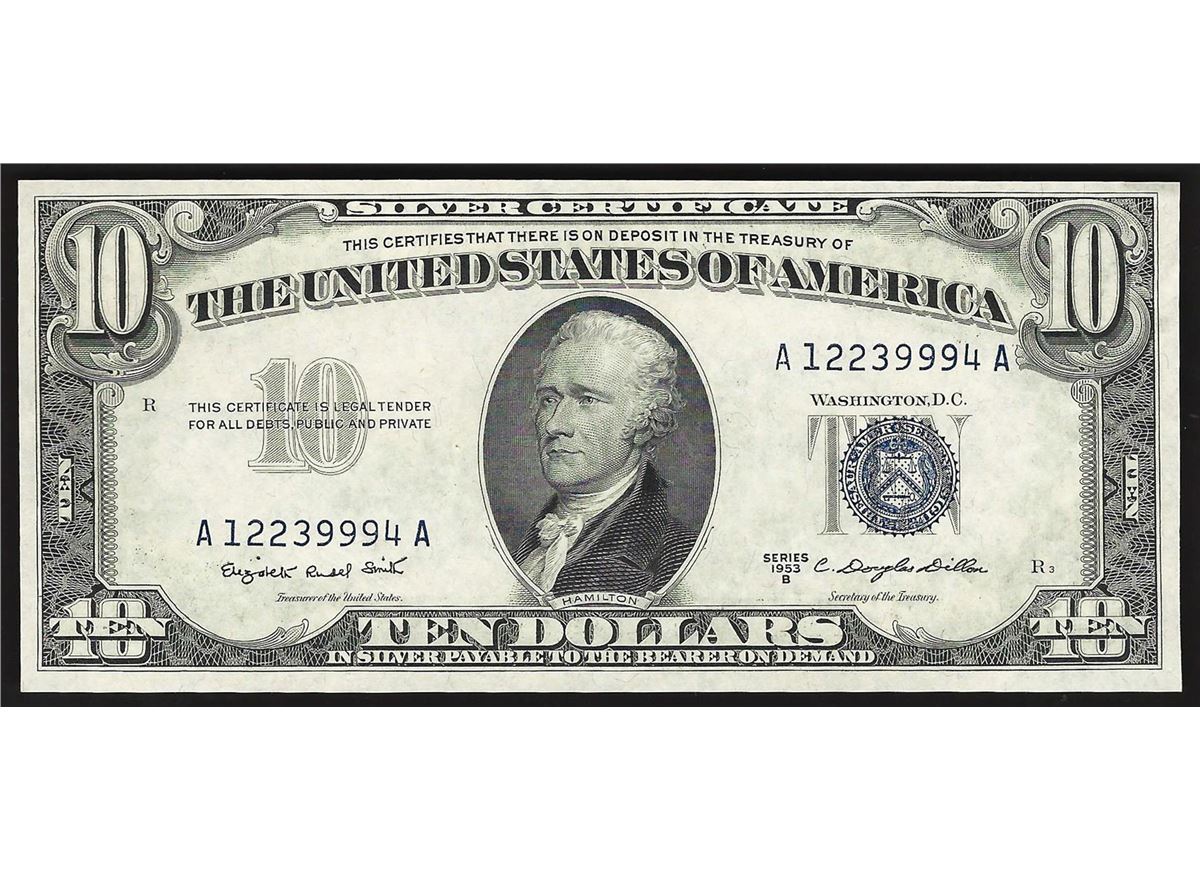 One 1953B $10 Silver Certificate Note.