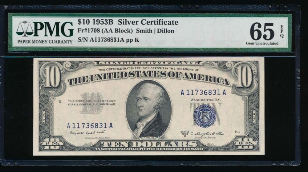 One 1953B $10 Silver Certificate PMG 65EPQ.