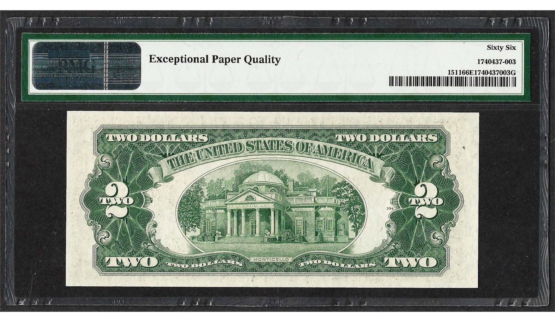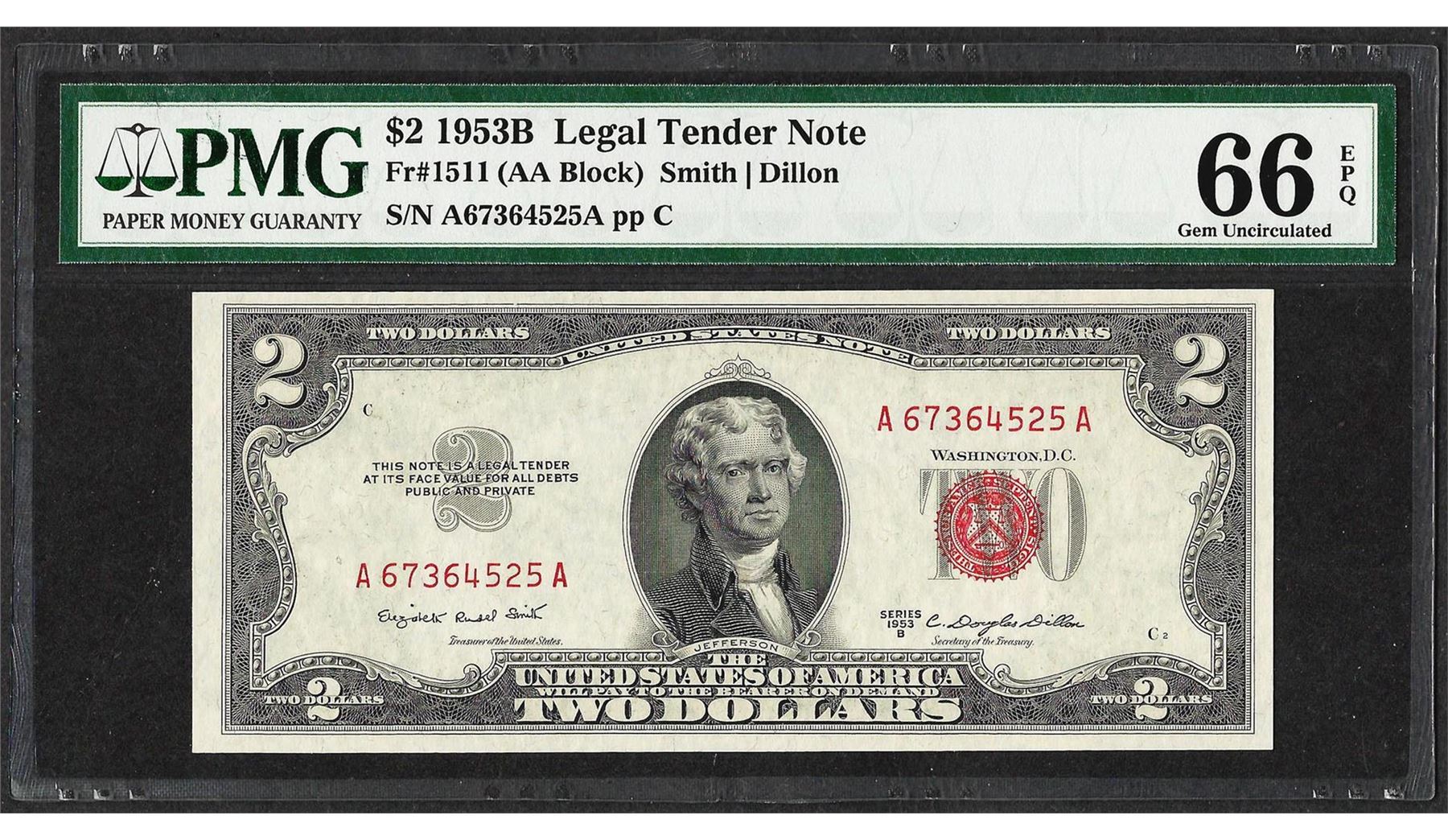 One 1953B $2 Legal Tender Note Fr.1511 PMG Gem Uncirculated 66EPQ. PMG Certified.