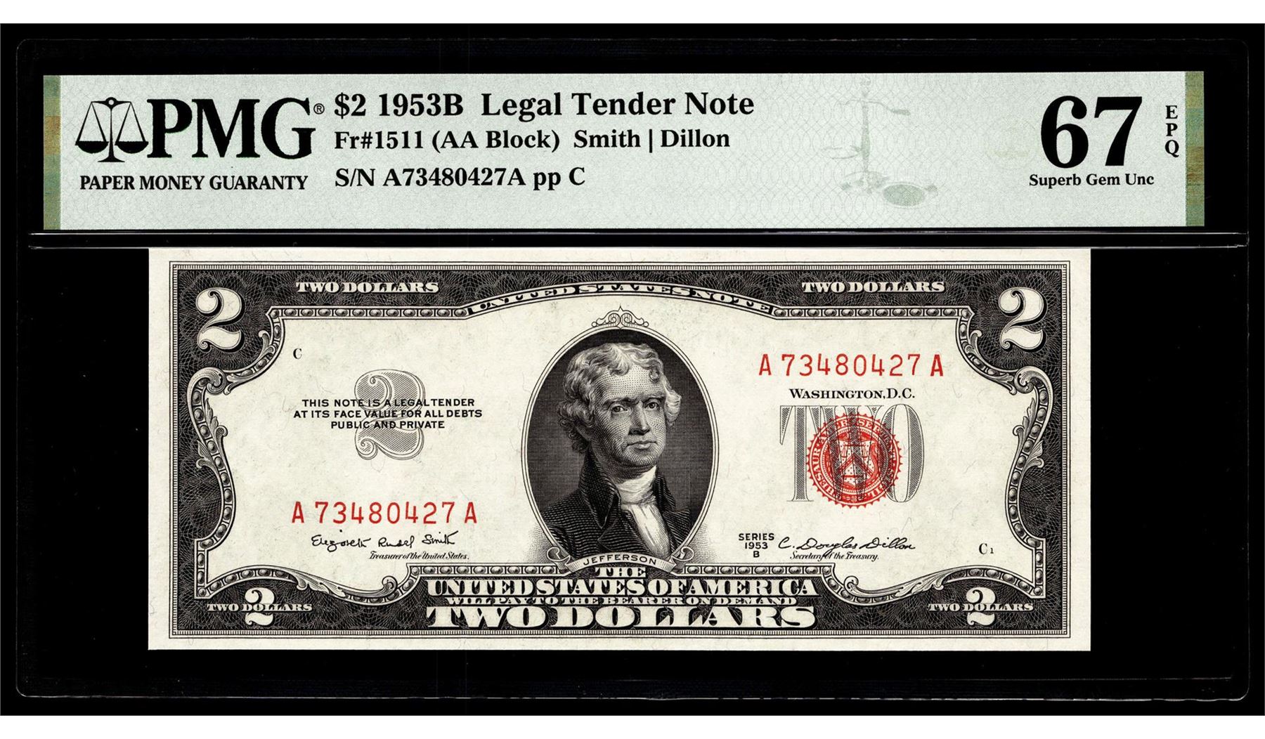 1953B $2 Legal Tender Note Fr.1511 PMG Superb Gem Uncirculated 67EPQ