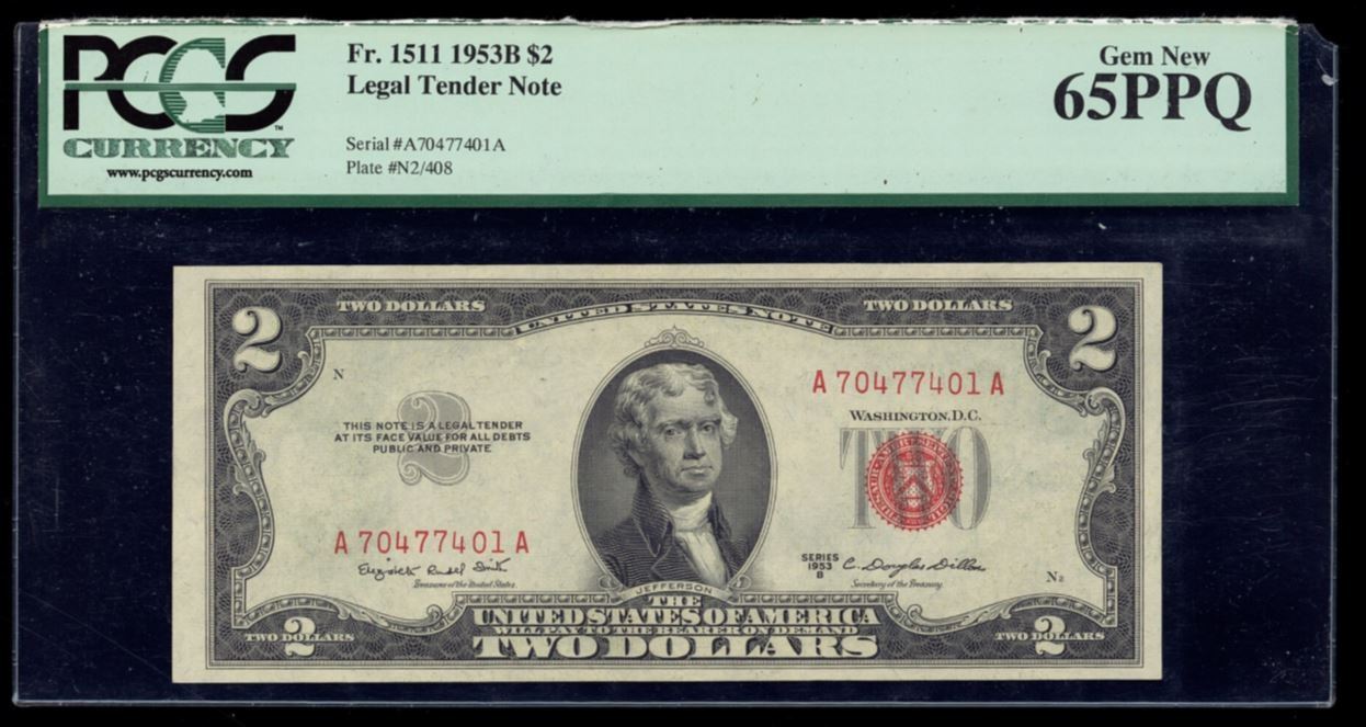 One 1953B $2 Legal Tender Note PCGS 65PPQ.