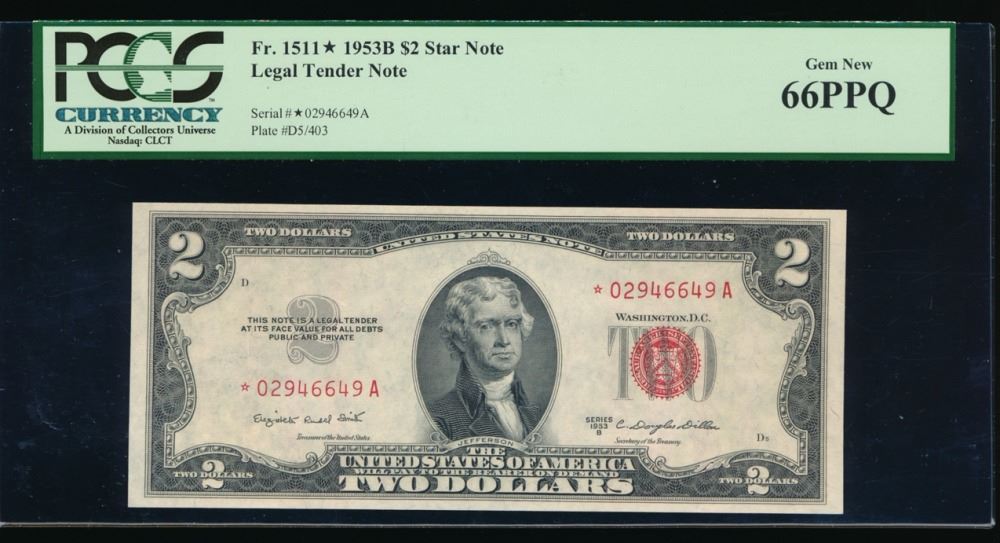 One 1953B $2 Legal Tender Note PCGS 66PPQ.