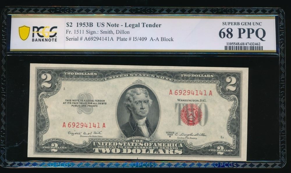 One 1953B $2 Legal Tender Note PCGS 68PPQ.
