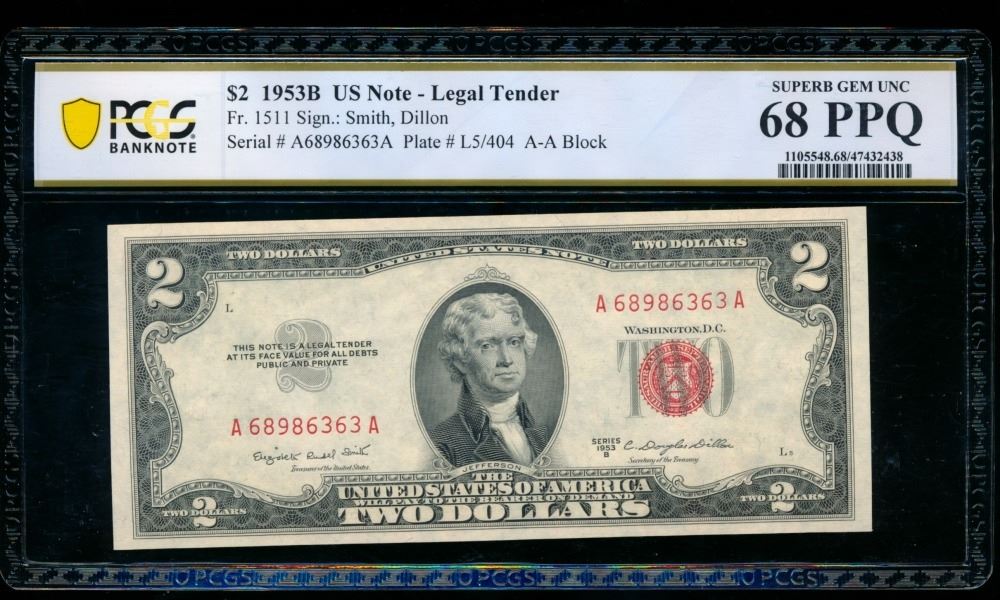 One 1953B $2 Legal Tender Note PCGS 68PPQ.