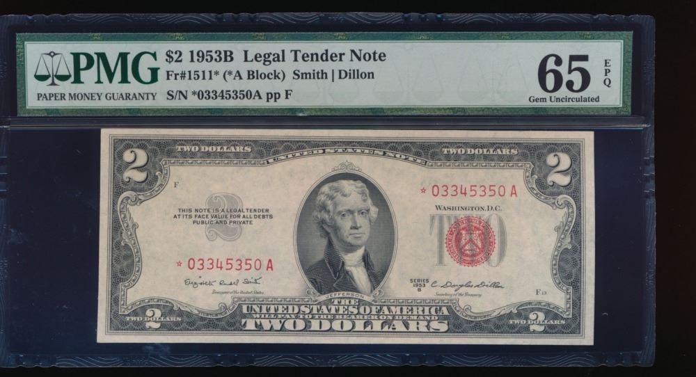 One 1953B $2 Legal Tender Note PMG 65EPQ.