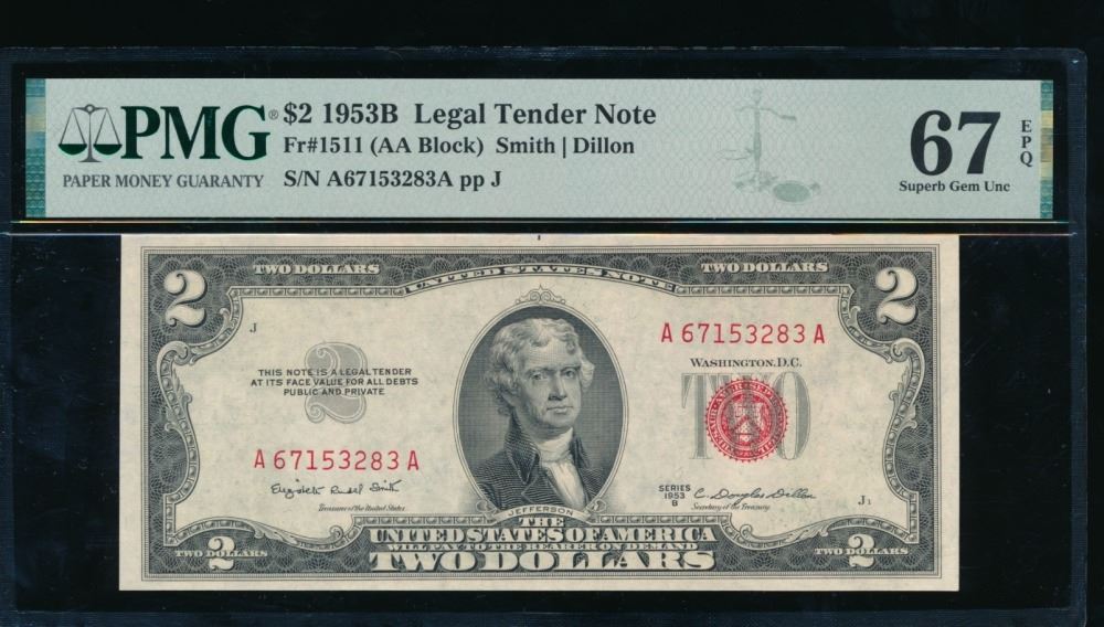 One 1953B $2 Legal Tender Note PMG 67EPQ.