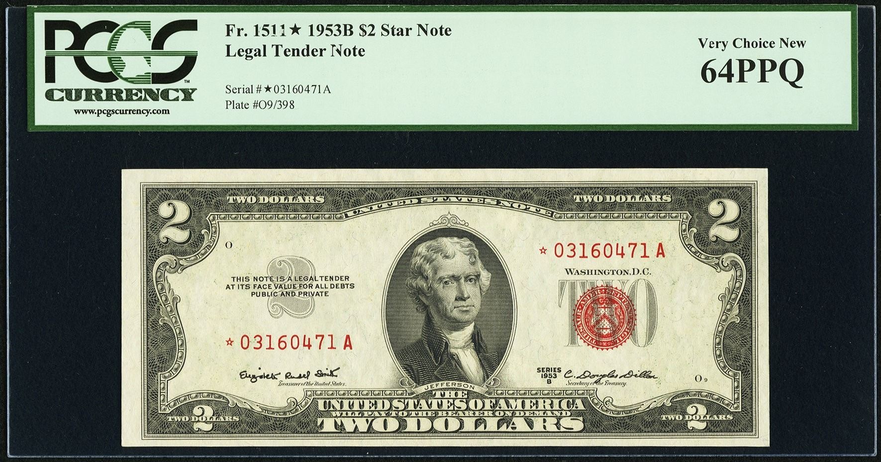 One 1953B $2 Legal Tender STAR Note PCGS 64PPQ.