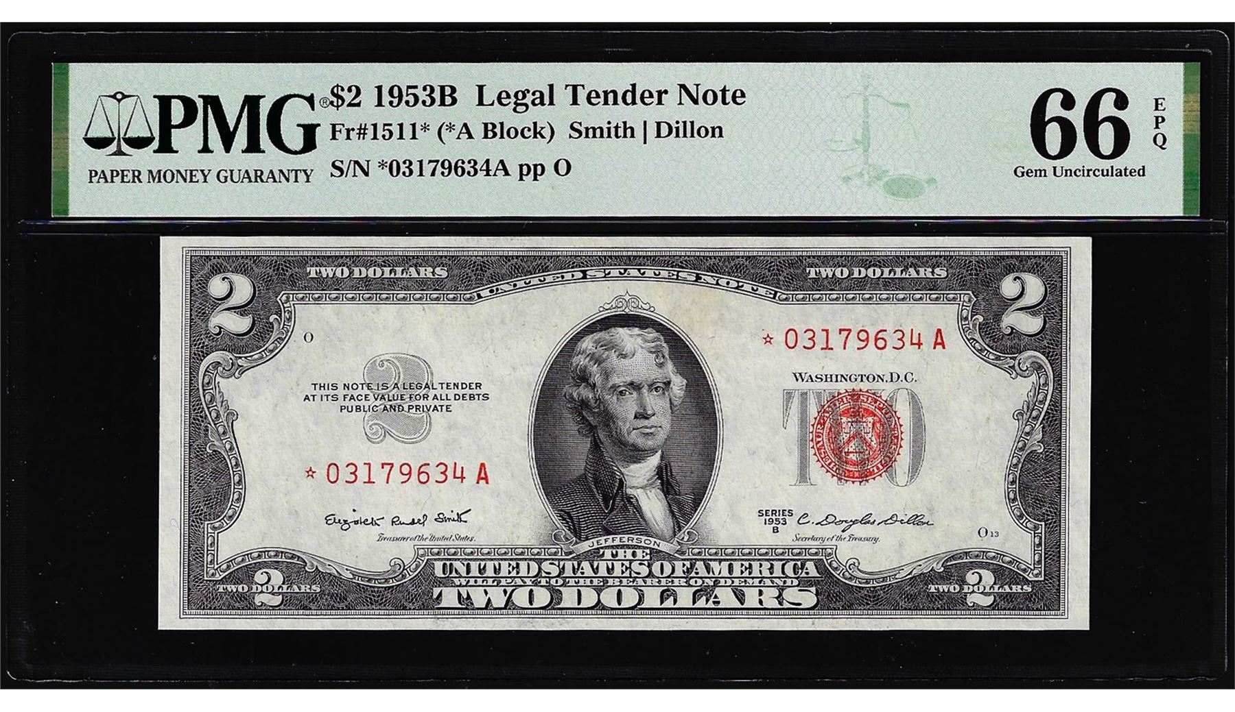 1953B $2 Legal Tender Star Note Fr.1511* PMG Gem Uncirculated 66EPQ