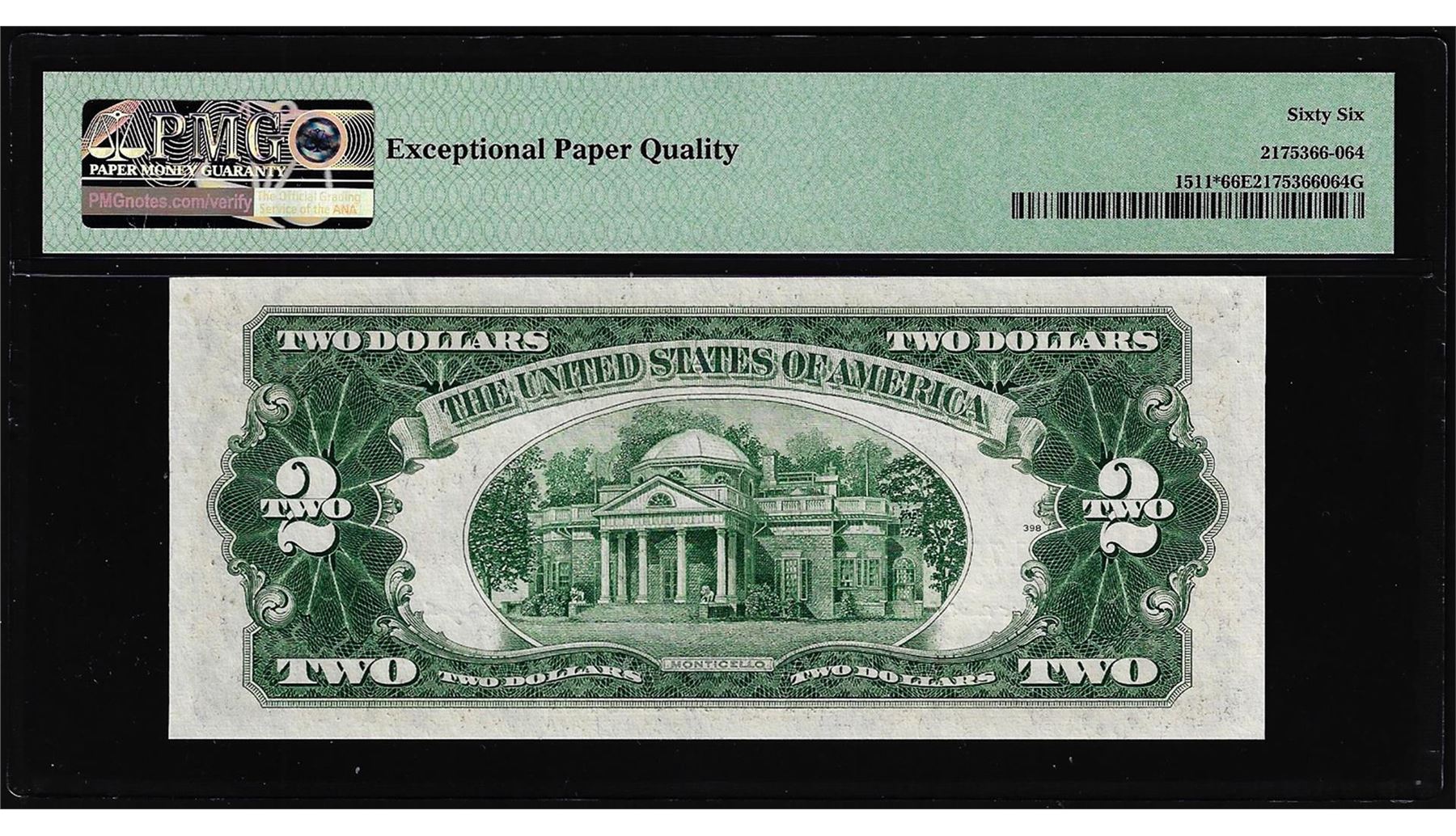 One 1953B $2 Legal Tender Star Note Fr.1511* PMG Gem Uncirculated 66EPQ. PMG Certified.