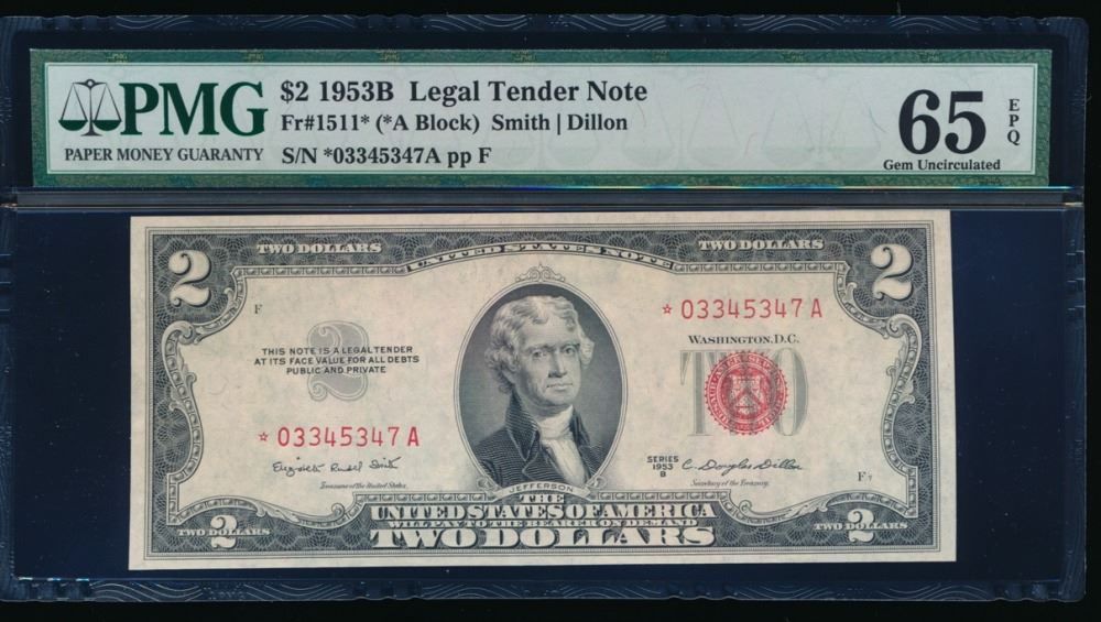 One 1953B $2 Legal Tender Star Note PMG 65EPQ.