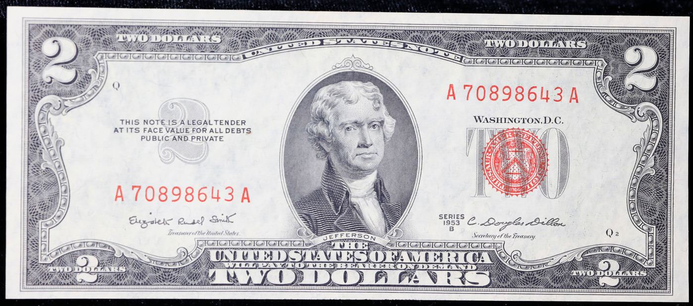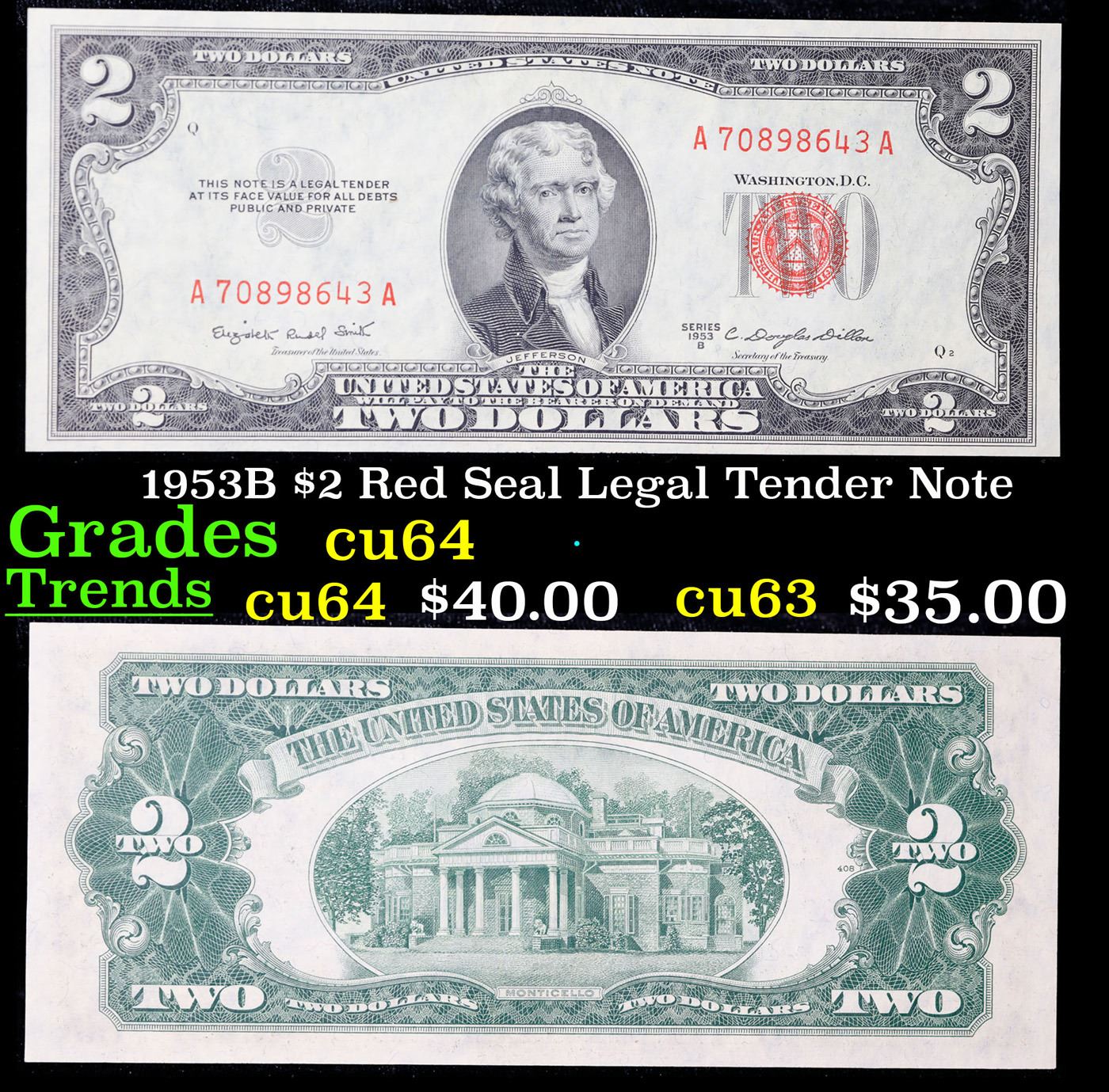 1953B $2 Red Seal Legal Tender Note Grades Choice CU.