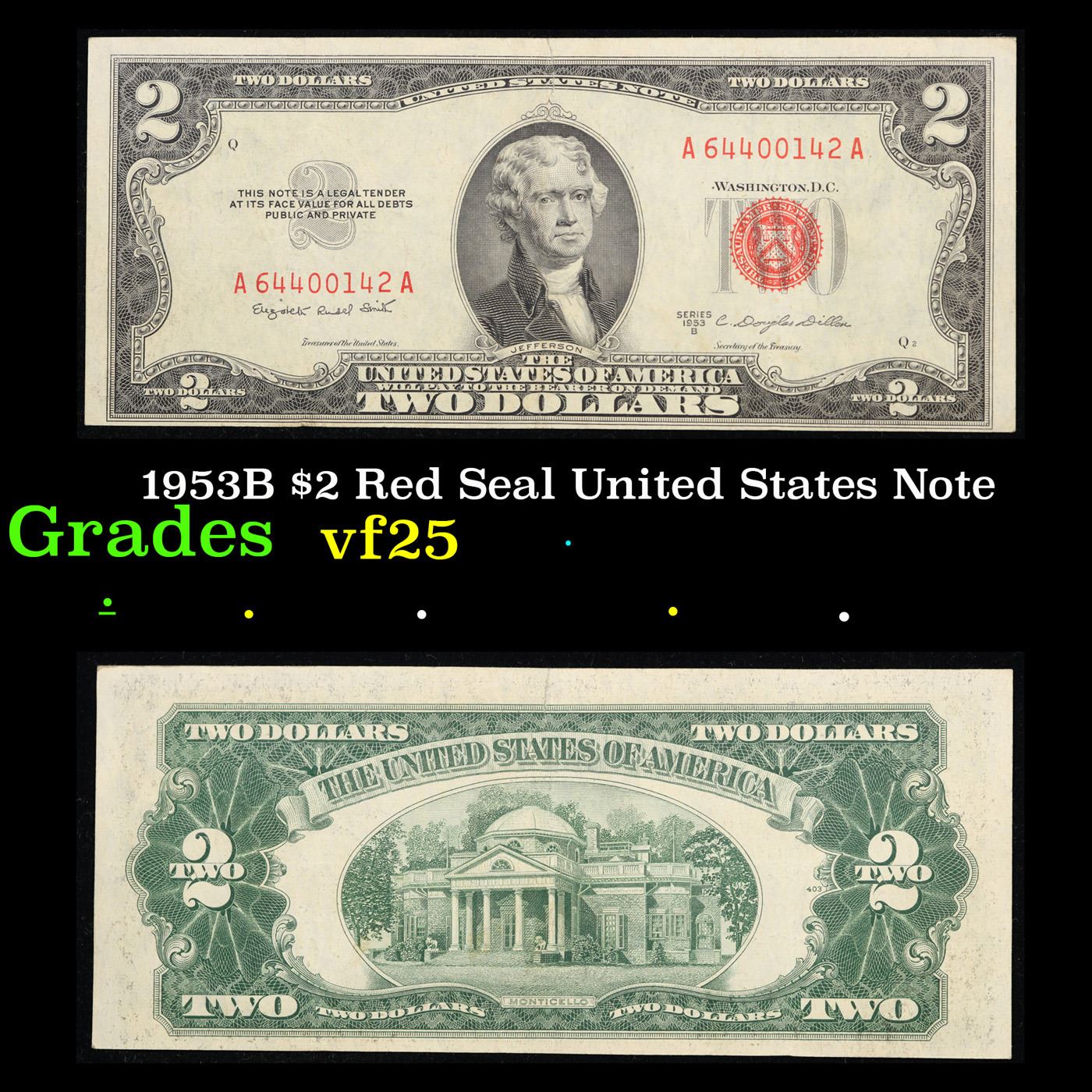1953B $2 Red Seal United States Note Grades vf+.