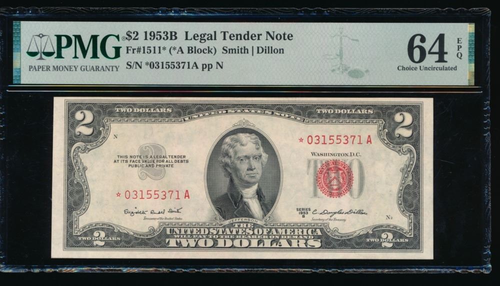 One 1953B $2 STAR Legal Tender Note PMG 64EPQ.