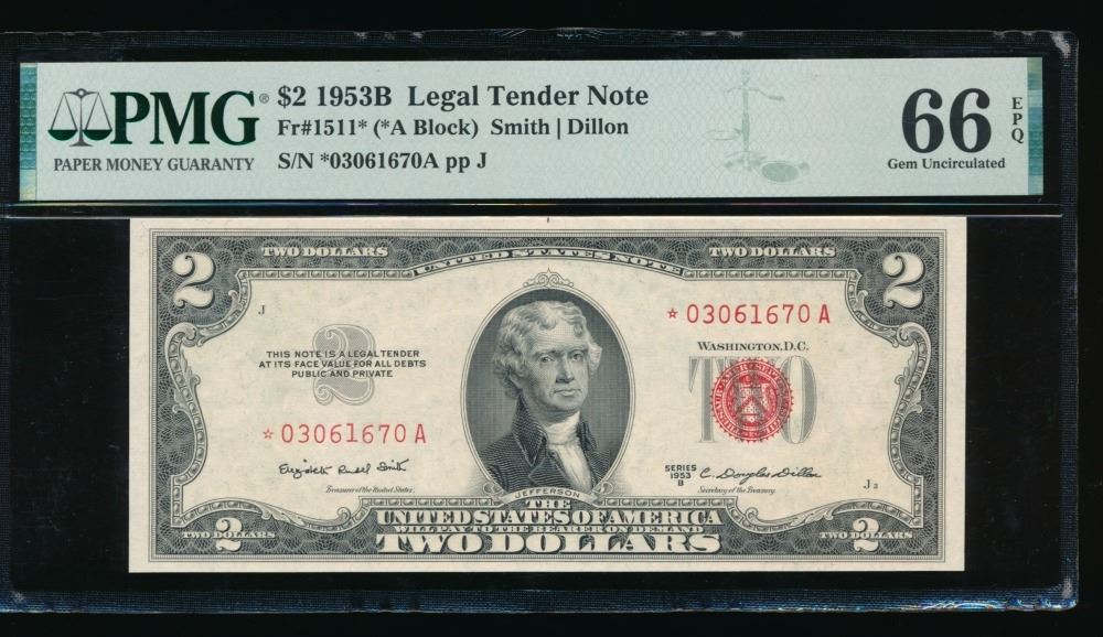 One 1953B $2 STAR Legal Tender Note PMG 66EPQ.