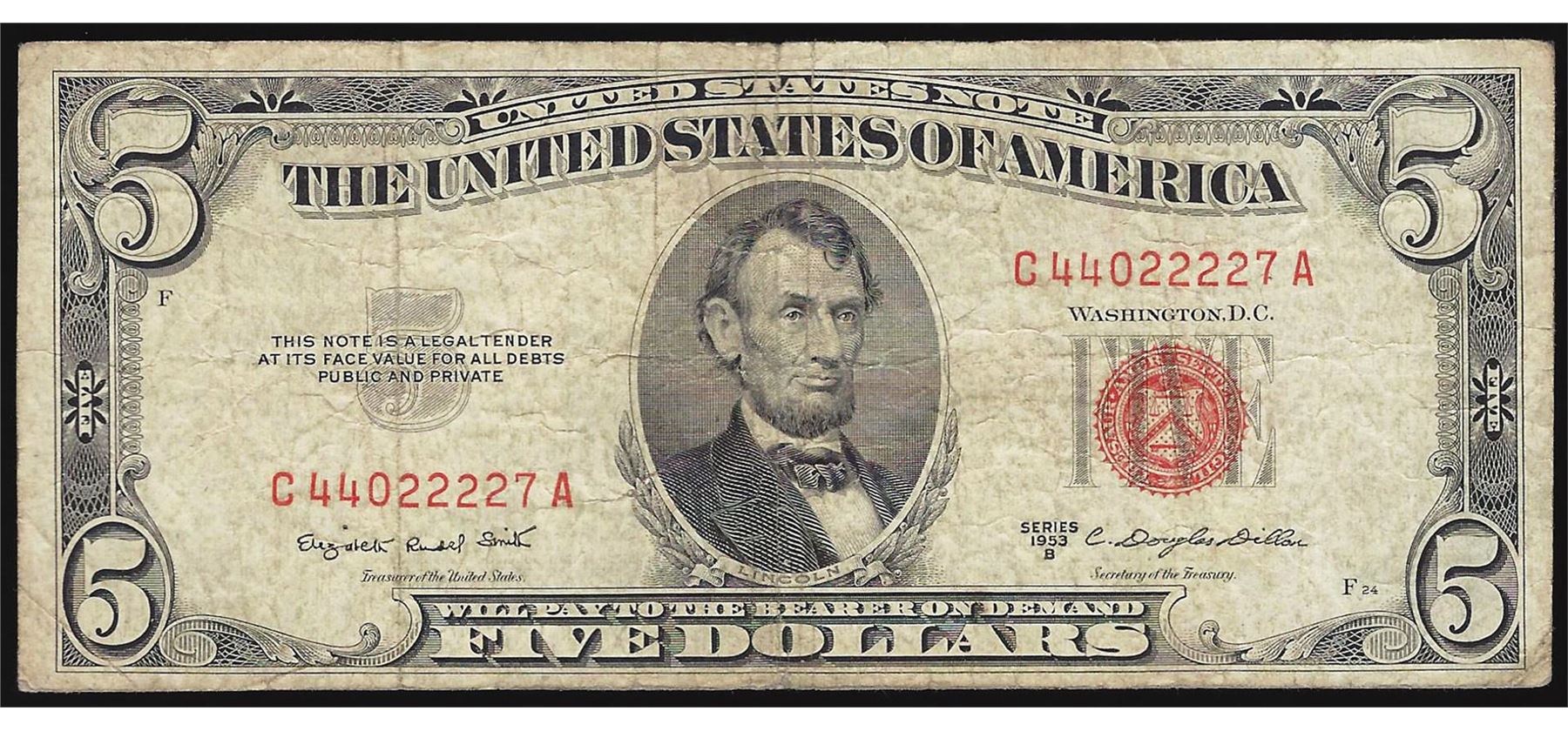 One 1953B $5 Legal Tender Note Fancy Serial Number.