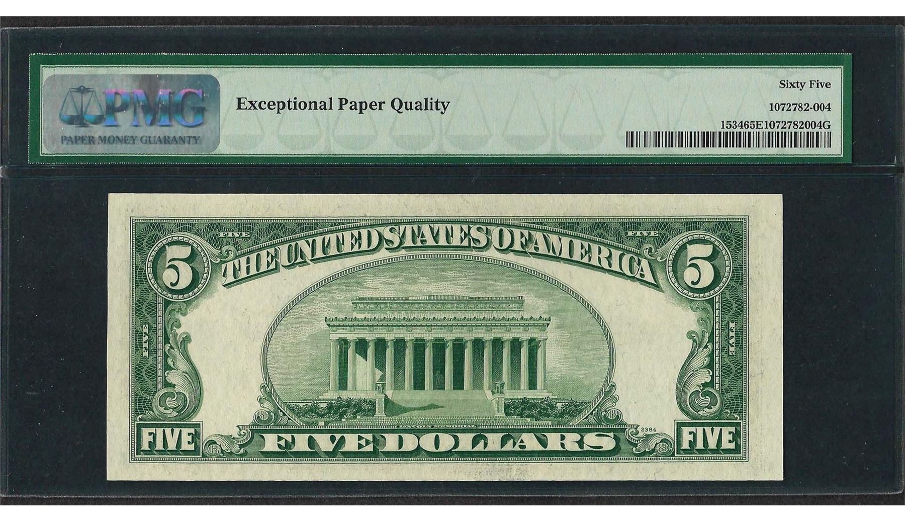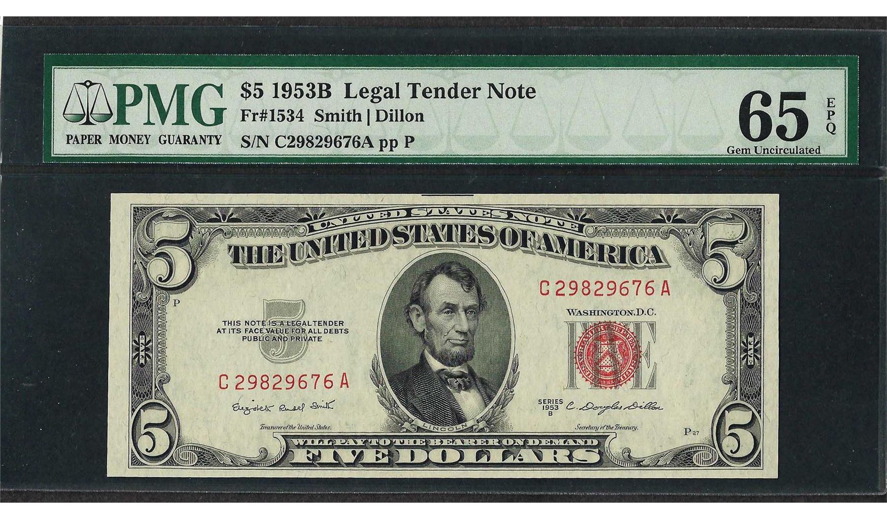 One 1953B $5 Legal Tender Note Fr.1534 PMG Gem Uncirculated 65EPQ. PMG Certified.