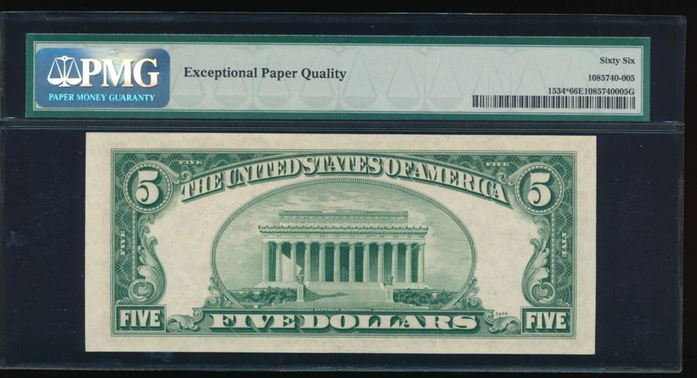 One 1953B $5 Legal Tender Note PMG 66EPQ.